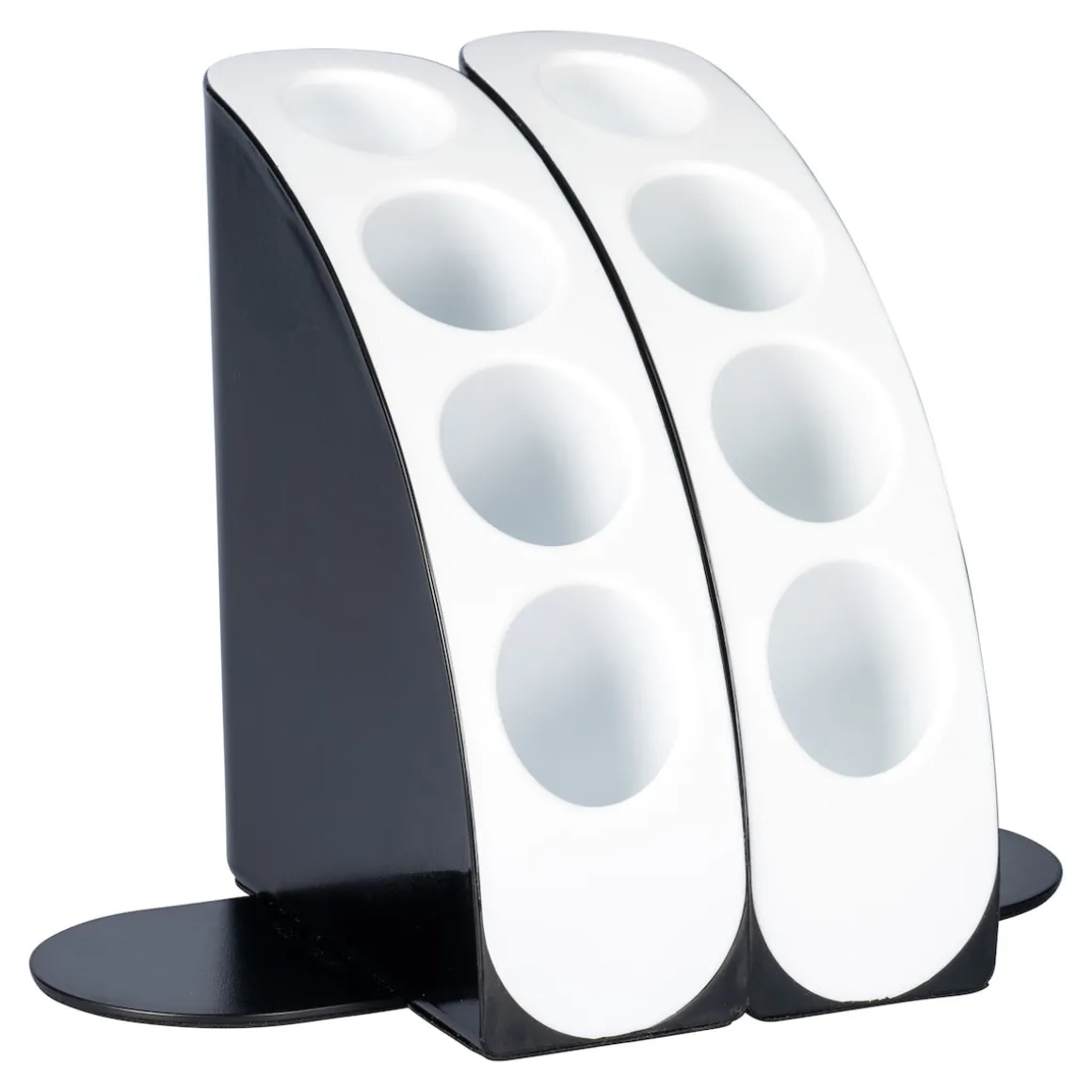Dieses Designobjekt macht als Buchstütze eine gute Figur und bietet jeweils 4 Aussparungen für Stifte & Co. Auch im Bad für Make-up-Artikel wie Pinsel & Co. sowie in der Küche für Kochbesteck kommt der Organzier gerne zum Einsatz.