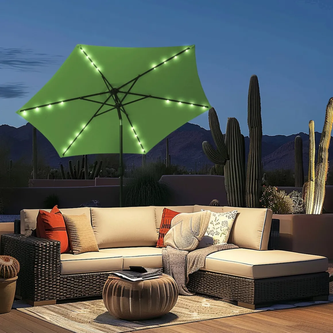 Mit dem Solar-Sonnenschirm „Sternenhimmel“ erleben Sie Sommerabende in Ihrem Garten oder auf dem Balkon noch angenehmer. Dank seines großzügigen Durchmessers von 2,7 m und UV-Faktor 50+ spendet er großzügigen Schatten, während die integrierte Solarbeleuchtung mit warmweißen LEDs eine stimmungsvolle Atmosphäre schafft. Die praktische Handkurbel ermöglicht ein einfaches Öffnen und Schließen, während der hochwertige Polyesterbezug mit UV50+ Schutz für Langlebigkeit sorgt. Mit der Dimmfunktion können Sie die Helligkeit nach Ihren Wünschen anpassen und gemütliche Abende im Freien verlängern.