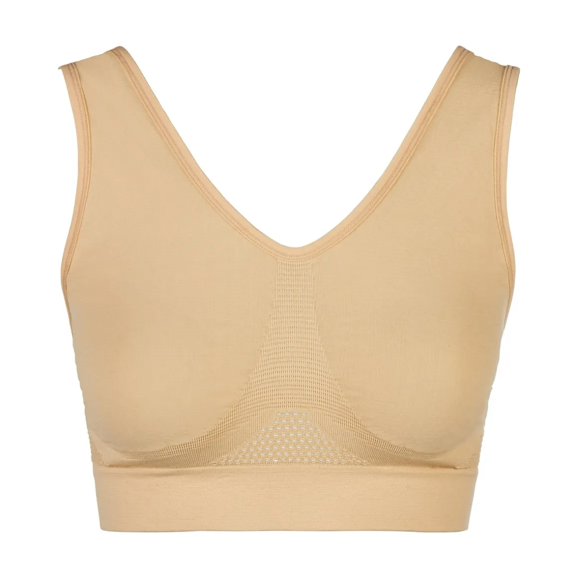 Gerade wenn es heiß wird, kann ein herkömmlicher BH sehr lästig werden. Sie schwitzen verstärkt unter der Brust. Der Sommer-BH „Atmungsaktiv“ schafft Abhilfe! Angenehm leichtes Material und dennoch guter Halt. Aussparungen vorne und hinten sorgen für ein luftiges Gefühl.