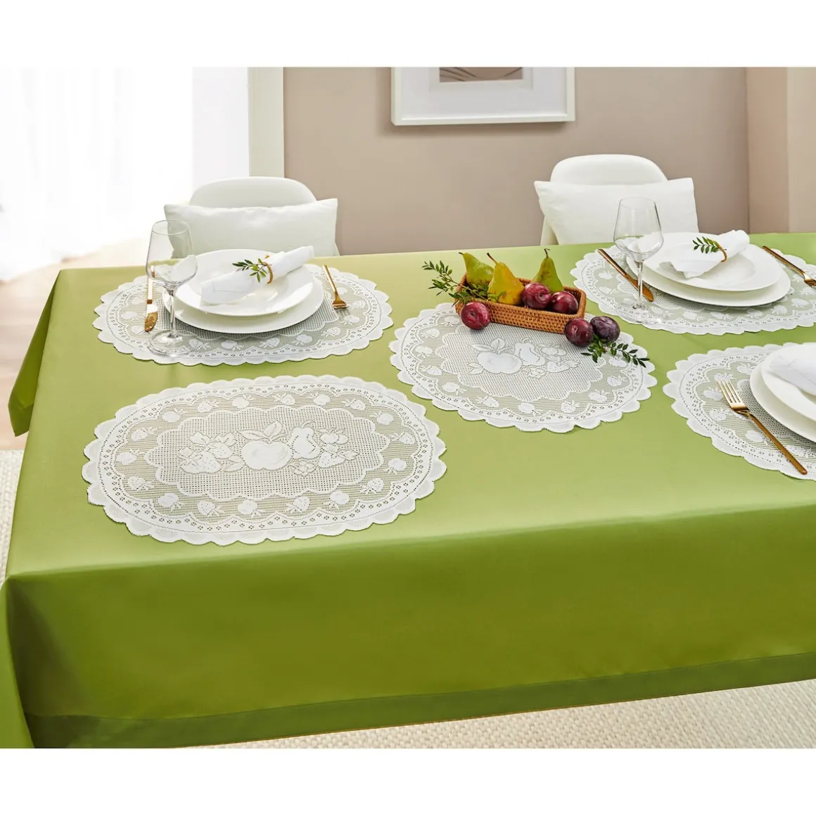 Mit seinem charmanten Früchte-Dekor und der kunstvoll gearbeiteten Spitzenumrandung ist dieses Deckchen ein stilvoller Blickfang für jeden Raum. Es eignet sich ideal für Tische, Kommoden oder Fensterbänke und bringt mit seiner farbenfrohen Gestaltung ein Stück Natur ins Haus. Gleichzeitig bleibt es durch seine pflegeleichte Verarbeitung besonders praktisch im Alltag.