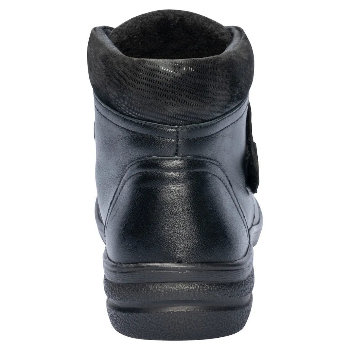 Die bequeme Stiefelette passt sich mit ihrem breiten Klettverschluss jedem Fuß perfekt an. Das hochwertige Leder und Veloursleder sorgt für einen hohen Tragekomfort. Innen mit warmem Filzfutter für angenehmen Sitz.