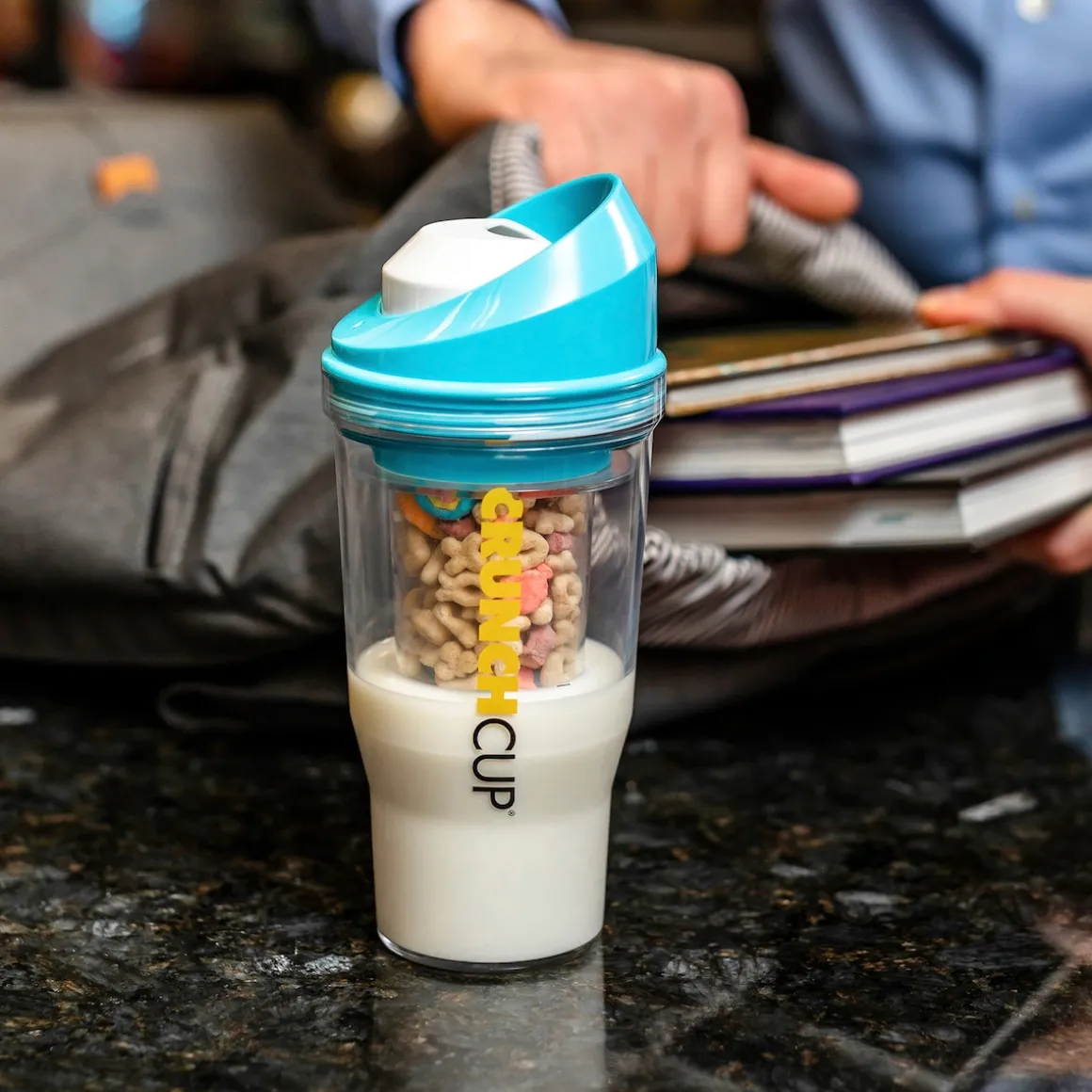CrunchCup by STONELINE – Das Original! Mit dem CrunchCup erhältst du ein praktisches und durchdachtes 2-in-1 System, das es dir ermöglicht, knuspriges Müsli oder Snacks jederzeit und überall zu genießen. Durch das innovative Design und das clevere Zwei-Kammer-System kannst du Milch und Trockenzutaten sicher und getrennt aufbewahren, bis du sie nach Belieben vermischen möchtest – und das ganz ohne Schüssel und Löffel! Kein Verschütten, keine Unordnung – einfach kippen, direkt im Mund mischen und genießen! Perfekt für die morgendliche Routine, einen schnellen Snack zwischendurch, im Büro, in der Schule, beim Sport, auf Reisen oder beim Camping. Die einfach Handhabung macht den CrunchCup zu einem praktischen Alltagshelfer – für dich, für mich, für alle! Egal ob Erwachsene oder Kinder, der CrunchCup ist für alle leicht zu verwenden. So funktioniert dein neuer Lieblings-Müslibecher: Fülle Milch oder eine andere Flüssigkeit bis zur Markierung in den äußeren Behälter, verschraube den inneren Behälter mit deinen Trockenzutaten wie Müsli, Nüsse oder Toppings deiner Wahl und schon bist du bereit. Mit einer einfachen Kippbewegung des Bechers mischst du den Inhalt beider Behälter direkt in deinem Mund – schnell, praktisch und zuverlässig. Die Menge an Milch lässt sich dabei ganz einfach steuern: Halte einen Finger auf das Luftloch im Deckel und reguliere so, wie viel Milch herausfließt – ganz nach deinem Wunsch! Der CrunchCup bietet auch viele kreative Möglichkeiten für erfrischende Getränke. Probiere doch mal eine frische Erdbeerbowle: Bewahre die Früchte im inneren Behälter auf und halte die Flüssigkeit im äußeren Behälter. Und wenn du noch mehr Abwechslung willst, versuche doch eine Kombination aus Trinkjoghurt außen und Fruchtpüree innen oder einen Protein-Shake mit Haferflocken. Der CrunchCup ist extrem vielseitig und lässt sich für unzählige Snacks und Drinks einsetzen! Probiere es aus – du wirst erstaunt sein, wie unkompliziert der CrunchCup funktioniert! 1 CrunchCup für 2 Portionen, Höhe gesamt mit Deckel: ca. 22 cm, Volumen: Außenbehälter (Flüssigkeit) bis zur max. Fülllinie: ca. 260 ml, Innenbehälter (Trockenzutaten): ca. 250 ml In der Farbe: Blau Die wichtigsten Vorteile auf einen Blick: Ideal für ein schnelles, ausgewogenes Frühstück unterwegs oder einen Zwischensnack Einfaches Mischen von Flüssigkeit und Trockenzutaten direkt im Mund – kein Löffel oder Schüssel notwendig Füllmenge ausreichend für zwei Portionen Vielseitig einsetzbar für Müsli, Milchshakes, Früchtebowle, Cocktails und vieles mehr Sichere, separate Aufbewahrung von Flüssigkeiten und Trockenzutaten Kompakt, praktisch und leicht zu handhaben Einfach zu reinigen, spülmaschinengeeignet Behälter aus hochwertigem, robustem Kunststoff BPA-frei Geruchsneutral Geschmacksneutral Recycelbar Material: Kunststoff, Platinsilikon