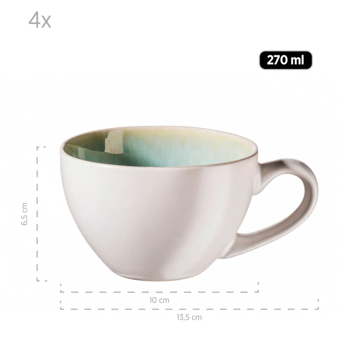 4x Kaffeetasse bzw. Teetasse (270 ml, Ø 10 cm) und 4x Untertasse (Ø 14,5 cm)
