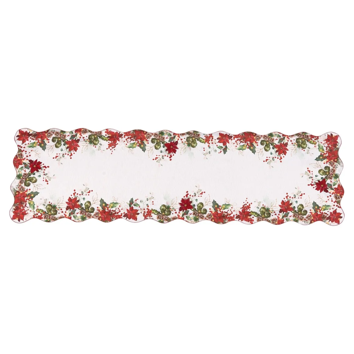 Dieser Tischläufer verleiht Ihrem Festtagstisch eine elegante und stimmungsvolle Atmosphäre. Aus hochwertigem Material gefertigt, besticht er durch ein halb besticktes und halb bedrucktes Motiv mit Weihnachtssternen, Beeren und grünen Zweigen. Der abgerundete Saum sorgt für eine edle Optik und macht den Läufer besonders formstabil und pflegeleicht. Mit seiner angenehmen Haptik ist dieser Tischläufer die perfekte Dekoration für festliche Anlässe und lässt Ihre Tafel in weihnachtlichem Glanz erstrahlen.