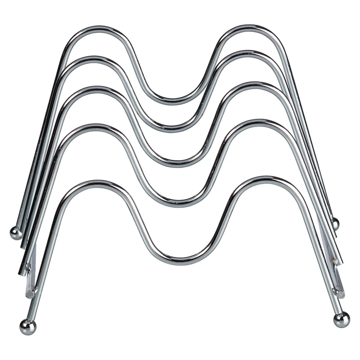 Die Halterung bietet Platz für bis zu 4 Topfdeckel jeglicher Größe gleichzeitig. Das schicke Wellendesign und die kugeligen Füßchen machen sich gut in jeder Küche. Die Abmessungen des Produkts betragen 18 x 17 x 13 cm. Es ist somit klein genug, um einen Platz auf jeder konventionellen Arbeitsplatte einzunehmen.