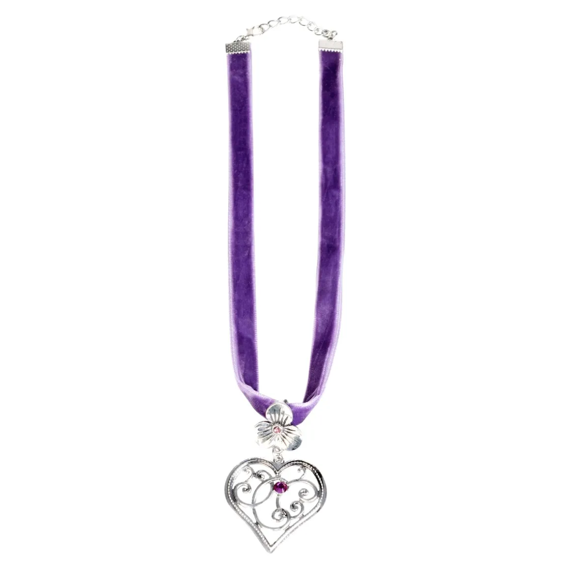 Romantik und Heimatgefühl in einem: Die filigranen Details und funkelnden Akzente machen diese Halskette zum perfekten Begleiter für Ihre Tracht. Mit edlem Samtband.
