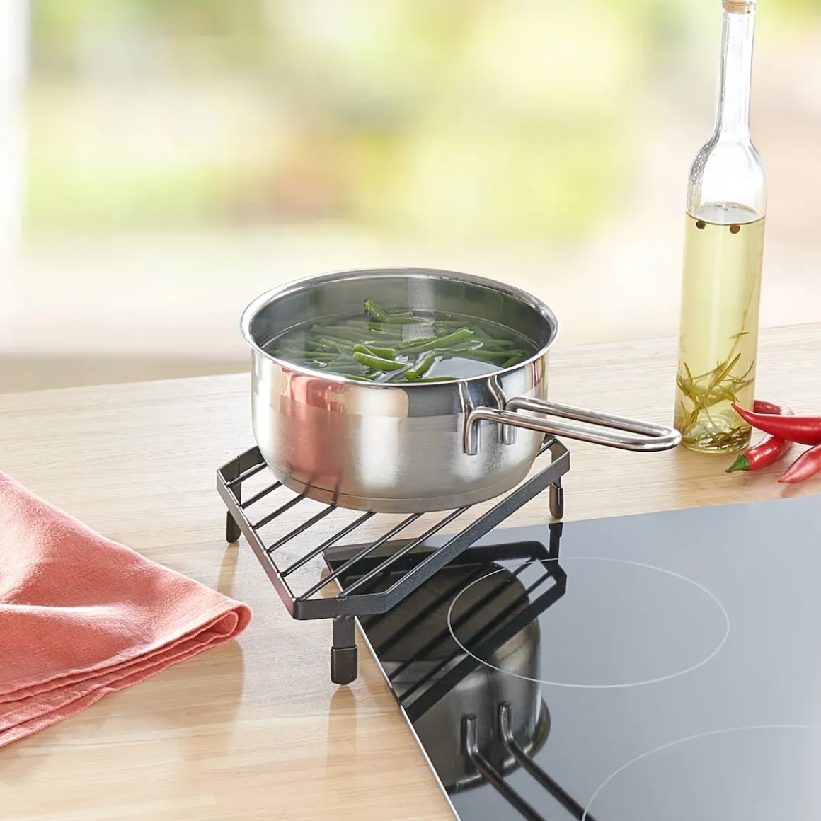 Eine „coole“ Sache: Dieser raffinierte Küchenhelfer sorgt im Nu für Abkühlung – selbst bei glühend heißen Töpfen und Pfannen. Praktisch: Die 3 Kunststoff-Füße schützen empfindliche Oberflächen zuverlässig vor Kratzern.