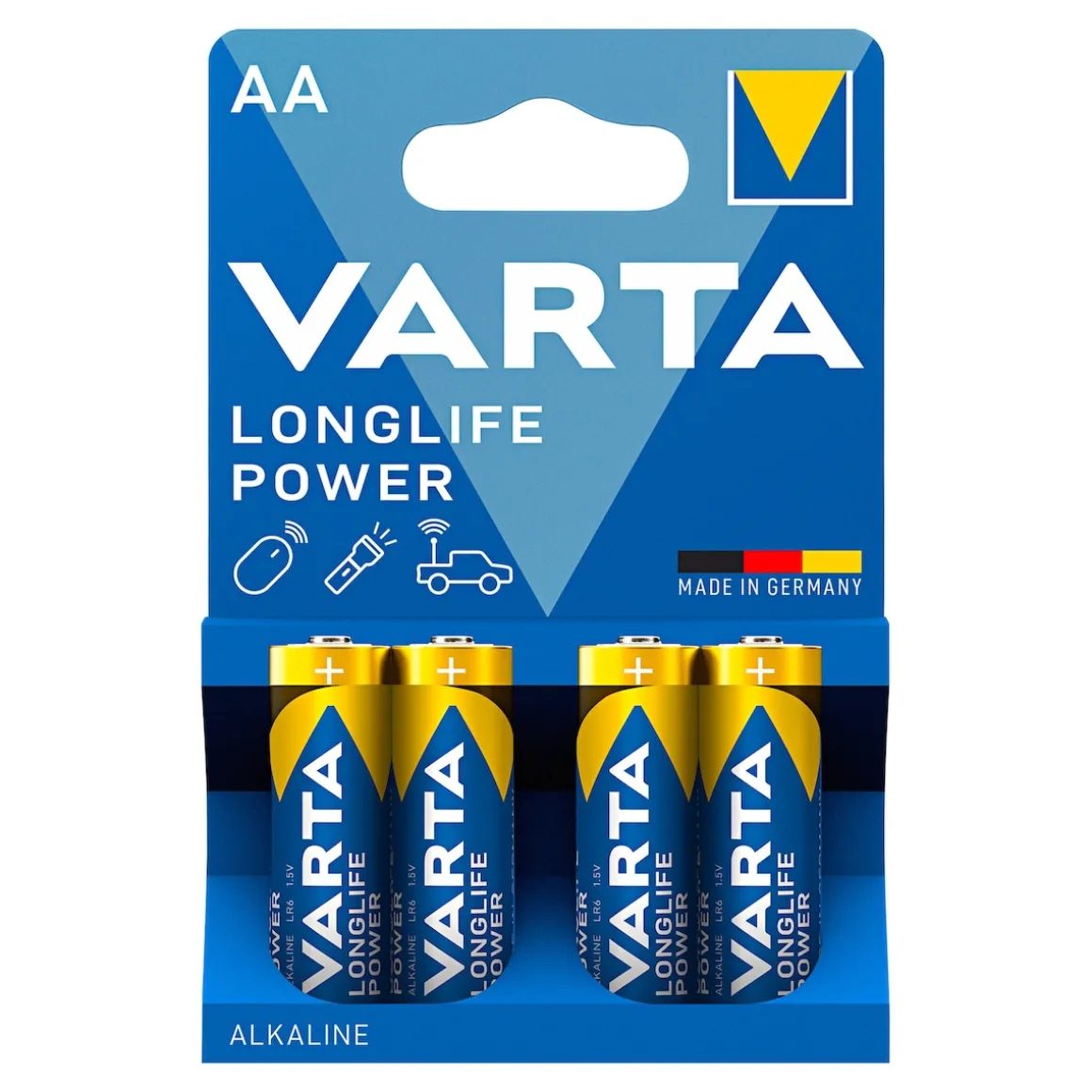 Mit den Varta-Longlife-Power-Batterien AA ist ein zuverlässiger Einsatz garantiert. Es handelt sich dabei um die leistungsstärksten VARTA Alkaline-Batterien. Sie wurden speziell für den täglichen Einsatz in zahlreichen Geräten entwickelt, vom Computerzubehör über elektronisches Spielzeug bis zu Taschenlampen und Radios. Die Batterien verfügen über eine konstante Spannung und bieten eine hervorragende Energiedichte und Auslaufsicherheit. Die AA-Batterien von VARTA werden in Deutschland hergestellt und sind zehn Jahre haltbar. In der praktischen Verpackung lassen sich die vier Batterien einfach aufbewahren und sind bei Bedarf jederzeit zur Hand.