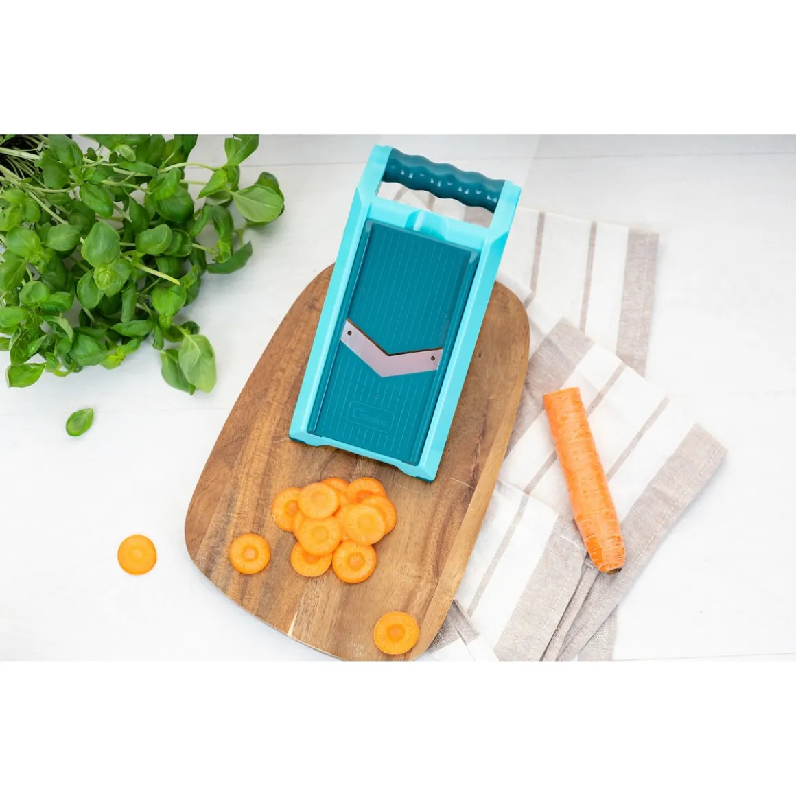 Entdecken Sie das perfekte Zubehör für Ihren Nicer Dicer Chef Professional – den verstellbaren Hobel im 2-teiligen Set! Erleben Sie feinste Schnitte in verschiedenen Stärken von 1-5 mm. Die ultra-scharfe Edelstahl-V-Klinge garantiert perfekte, gleichmäßige Scheiben, sei es bei weichen oder harten Lebensmitteln. Der innovative Handy Hopper ermöglicht sicheres Schneiden bis zum letzten Rest. Mit dem Klingenschutz wird die Aufbewahrung extra sicher. Machen Sie das Kochen zum Vergnügen und erleichtern Sie sich den Alltag mit diesem unverzichtbaren Küchenhelfer. Qualität, Präzision und Sicherheit – der verstellbare Hobel für den Nicer Dicer Chef Professional setzt neue Maßstäbe!