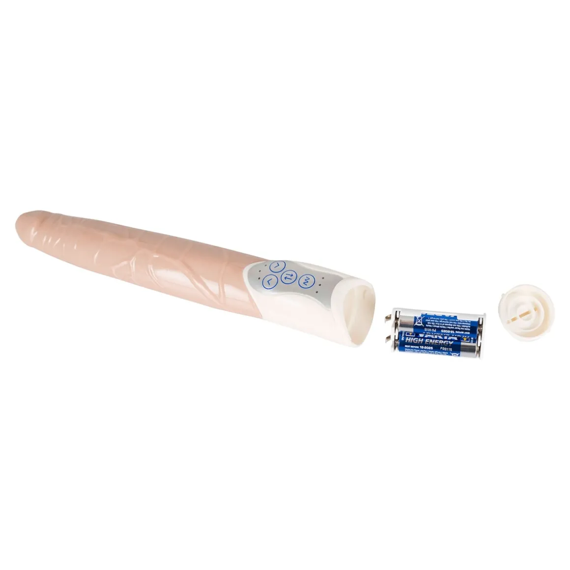 Durch seine imposante Erscheinung macht der Herkules Vibrator seinem Namen alle Ehre. Denn mit einer stolzen Länge von 19 Zentimetern und einem Durchmesser von vier Zentimetern ist der prall geäderte Liebhaber bestens für aufregende Lustmomente allein oder zu zweit ausgestattet. Von sanft bis wild beherrscht Herkules sämtliche Disziplinen der erotischen Verführung. Für einen süßen Vorgeschmack auf seine Liebhaberqualitäten sorgt er mit seiner kraftvollen Vibrationsfunktion. Diese lässt sich ganz nach persönlichem Geschmack in fünf Stufen von zart bis hart regulieren. Steigt das Verlangen, kann über einen zweiten Regler jederzeit die Stoßfunktion hinzugeschaltet werden. Sie sorgt für ein noch realistischeres Lustempfinden und stimuliert den G-Punkt. Wie die Vibration lässt sich auch die Intensität der Stöße von zärtlich über fordernd bis ungezügelt in fünf Stufen regulieren. Explosive Höhepunkte garantiert die Kombination aus Vibration und Stoßfunktion. Ausprobieren ist hier ausdrücklich erwünscht, denn nur so lässt sich die Einstellung finden, mit der sich ganz persönliche neue Lustsphären eröffnen.