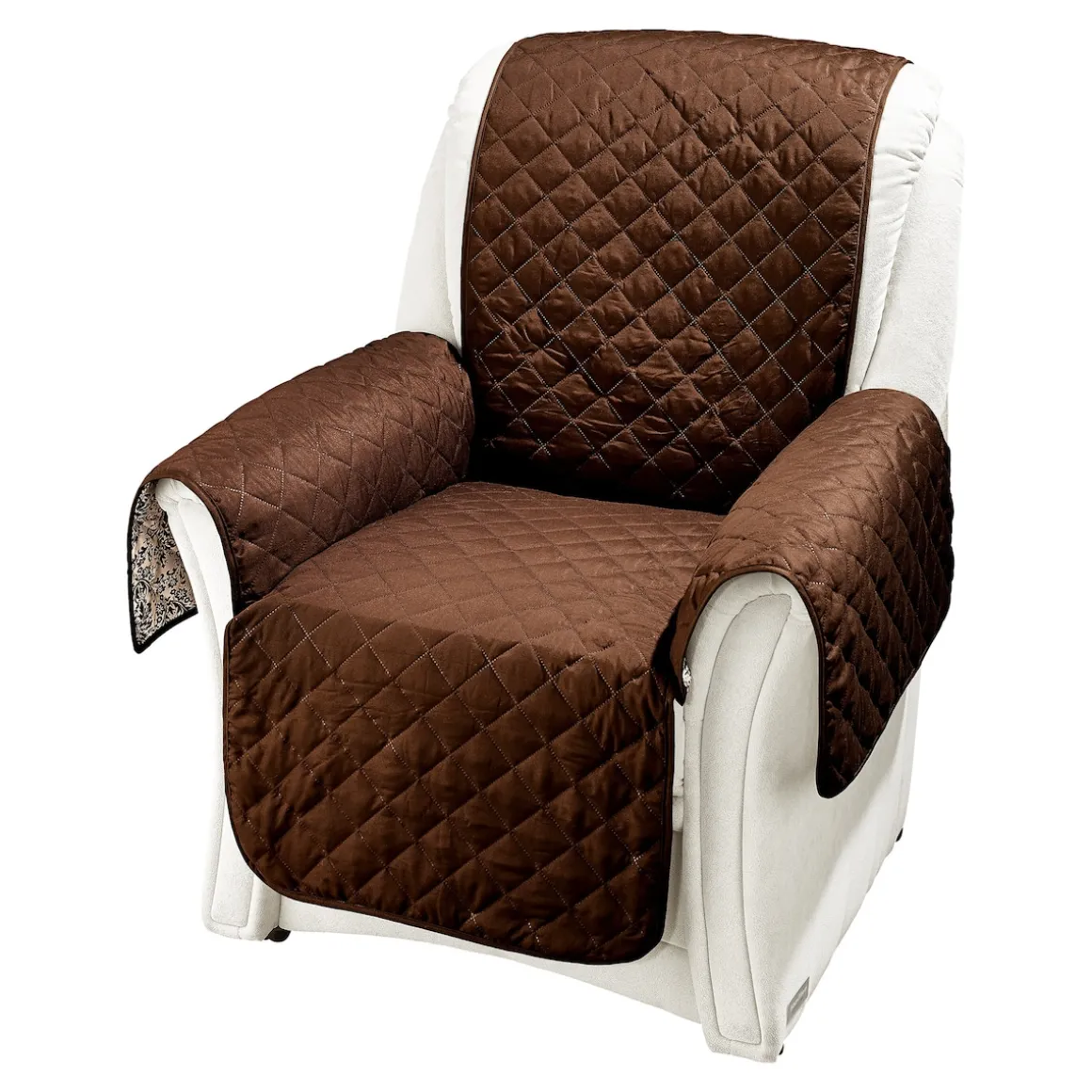 Sie mögen die Abwechslung? Kein Problem: Die Sesselschoner sind von beiden Seiten einsetzbar. Auf der einen Seite besitzt der Bezug eine unifarbene Stepp-Optik, auf der anderen ein mehrfarbiges Muster. Zur Auswahl stehen verschiedene Varianten wie zum Beispiel das Modell Safari, das auf der einen Seite braun und auf der anderen Seite mit verschiedenen Tierprints (Leo, Zebra) versehen ist.