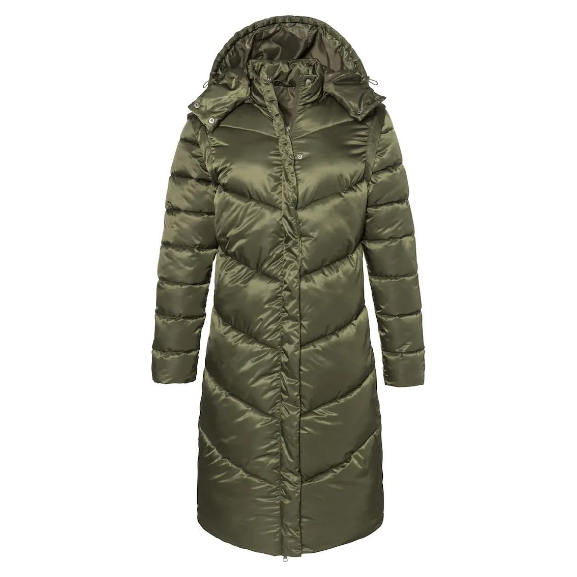 Der warme Steppmantel punktet nicht nur mit seinem angesagten Metallic-Effekt, sondern vor allem mit den per Reißverschluss abnehmbaren Ärmeln: Im Nu verwandeln Sie den Mantel in eine Steppweste, deren Kapuze ebenfalls abnehmbar ist. Ein 2-Wege-Reißverschluss sorgt zudem für extra Tragekomfort. Mit 2 seitlichen Taschen, mit Reißverschluss.