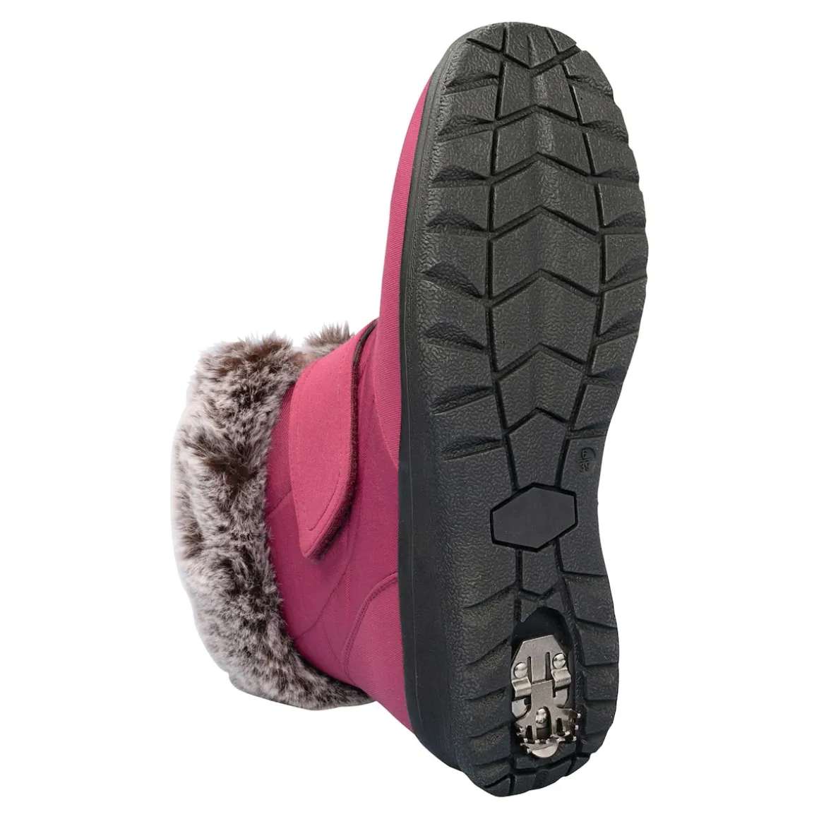 Warm und sicher durch die kalte Jahreszeit: Mit dieser gefütterten Winterstiefelette sagen Sie Rutschpartien ade – klappen Sie bei Glätte einfach die Spikes in der rutschhemmenden Profil-Laufsohle aus! Der breite Klettverschluss sorgt für einen leichten Ein- und Ausstieg und bietet zugleich eine optimale Anpassung an den Fuß. Der kuschelige Kunstpelzrand macht „Monika“ auch optisch zum echten Highlight. Mit weicher Decksohle.