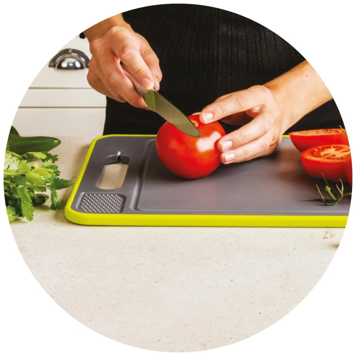 - Einfach umdrehen und Ihr Auftaubrett wird zum Allzweck-Schneidebrett