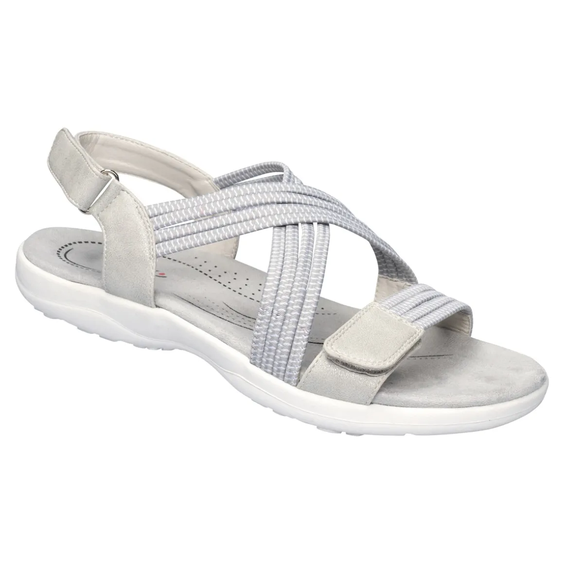 Sommerleicht und super komfortabel: Diese trendige Sandalette sorgt mit ihren elastischen Riemchen für einen hohen Tragekomfort. Dank der Klettverschlüsse kann sie bequem geöffnet und individuell an den Fuß angepasst werden. Mit weicher Decksohle und rutschhemmender Laufsohle.