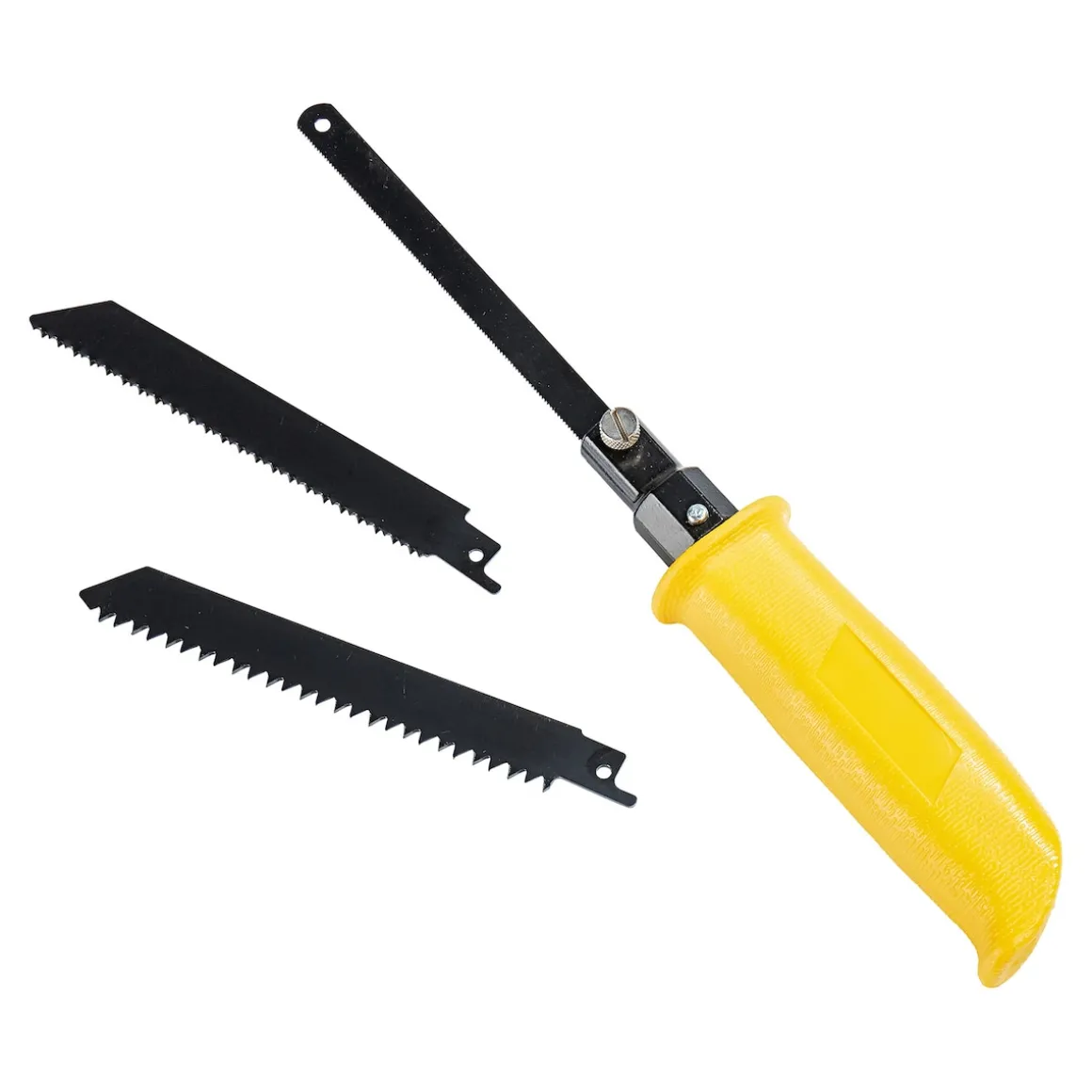 Starke Zähne muss eine Säge haben, um gegen harte Materialien zu bestehen. Unsere Allzweck-Säge löst das Problem mit ihren 3 wechselbaren Klingen. Damit ist sie für nahezu jeden Einsatzzweck gewappnet: mit einer Klinge für Eisen, Kunststoff und Aluminium, einer Klinge für Nassholz und einer Klinge für Beschichtungen sowie Sperrholz- und Holzfaserplatten. Es können handelsübliche Sägeblätter verwendet werden.