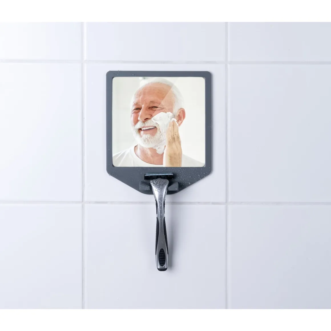 Ihren Föhn können Sie beiseitelegen: Egal, wie dampfig Ihr Bad wird, dieser Spiegel hält die Sicht klar! Einfach die Folie abziehen und den Antibeschlagspiegel an die Wand kleben. Praktisch: Der Spiegel ist herausnehmbar und kann auch an anderer Stelle genutzt werden. Mit praktischer Front-Halterung für Ihren Rasierer.