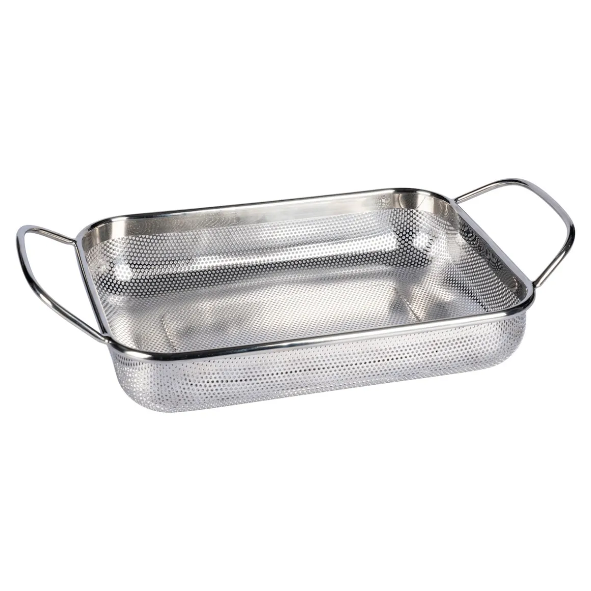 Sie lieben Hähnchen, Pommes und Ofengemüse, aber so richtig knusprig wird es nie? Auf dem Backblech oder -rost platziert, lässt die Lochstruktur dieser Schale von allen Seiten Luft zirkulieren: Feuchtigkeit und Fett können entweichen – für gleichmäßig gegarte und krosse Ergebnisse.