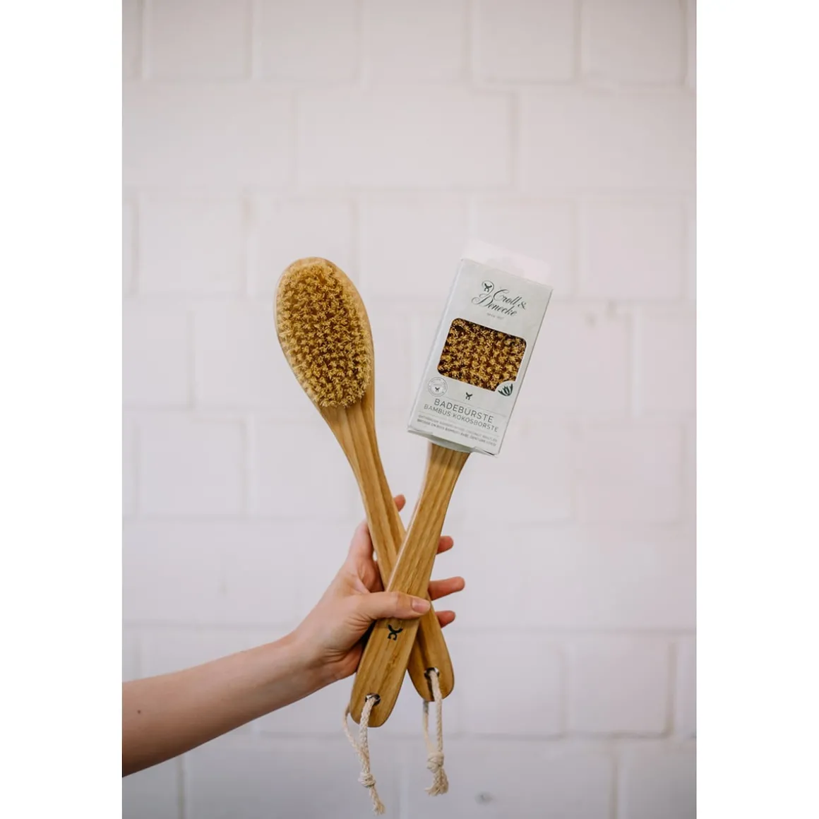 Eine Massage mit dieser Bürste wirkt vitalisierend auf den ganzen Körper. Mit langem Handgriff – auch für die Fuß- und Rückenpflege geeignet. Hochwertig, nachhaltig und natürlich: aus Bambusholz und Kokosborsten.