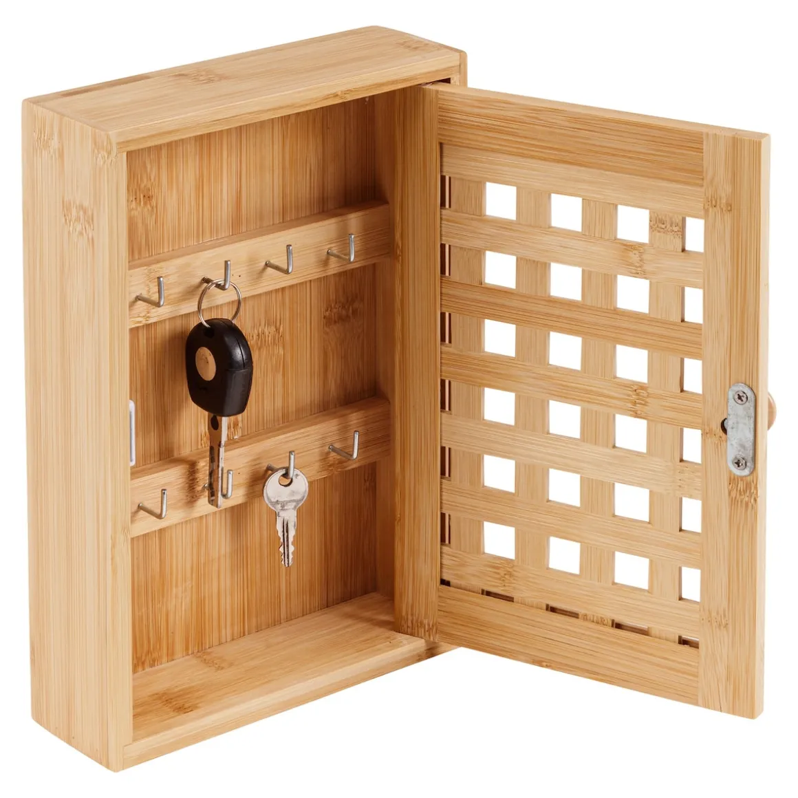 Wohin nur mit Haus-, Auto- und Kellerschlüssel? In diesem dekorativen Bambus-Schlüsselschränkchen lassen sich mindestens 8 Schlüsselbunde hinter einer schmucken Tür aufbewahren. So müssen Sie nicht lange suchen und haben die Schlüssel immer griffbereit.