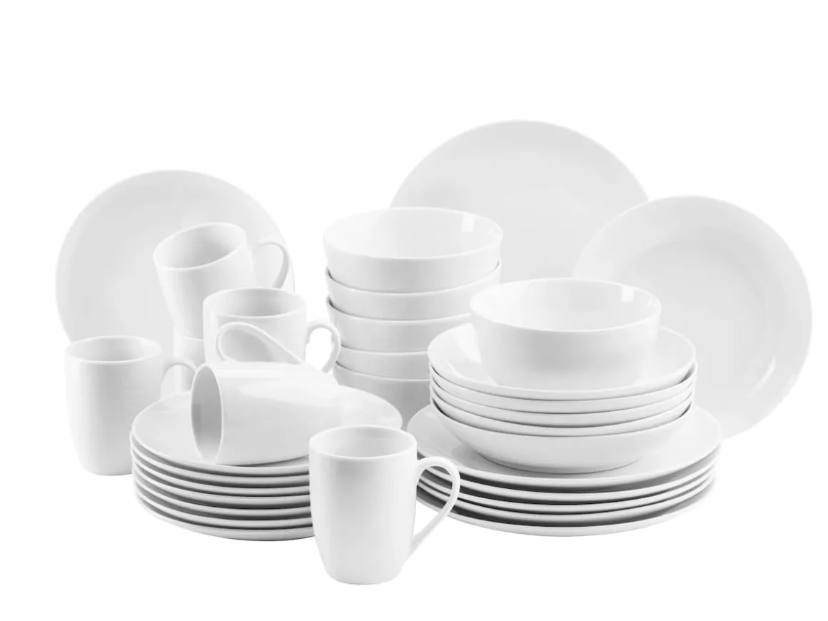 Dieses 30-teilige Geschirr Set für 6 Personen in Weiß besteht aus: