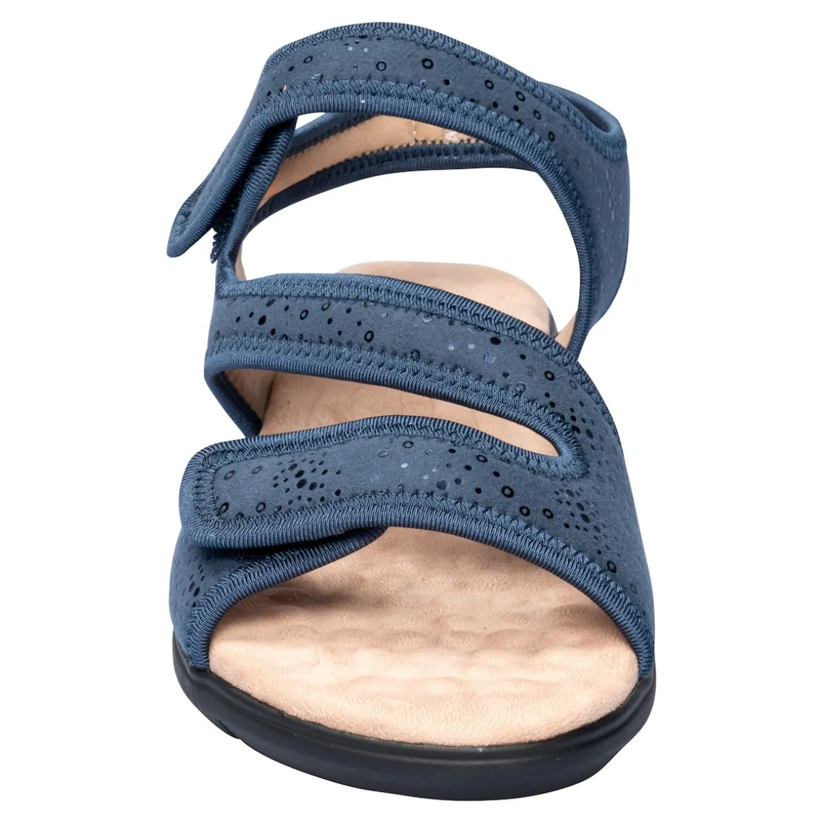 Ihre Füße im Sommerglück! Diese leichte und bequeme Sandale schenkt Ihnen den ganzen Tag höchsten Tragekomfort. 2 Klettverschlüsse ermöglichen eine individuelle Anpassung und Weitenregulierung, sodass sich auch empfindliche Hallux valgus-Füße nicht eingeengt fühlen. Eine weiche Decksohle aus Mikrofaser sorgt für einen Massage-Effekt, den Sie nicht mehr missen möchten. Mit rutschhemmender Laufsohle.