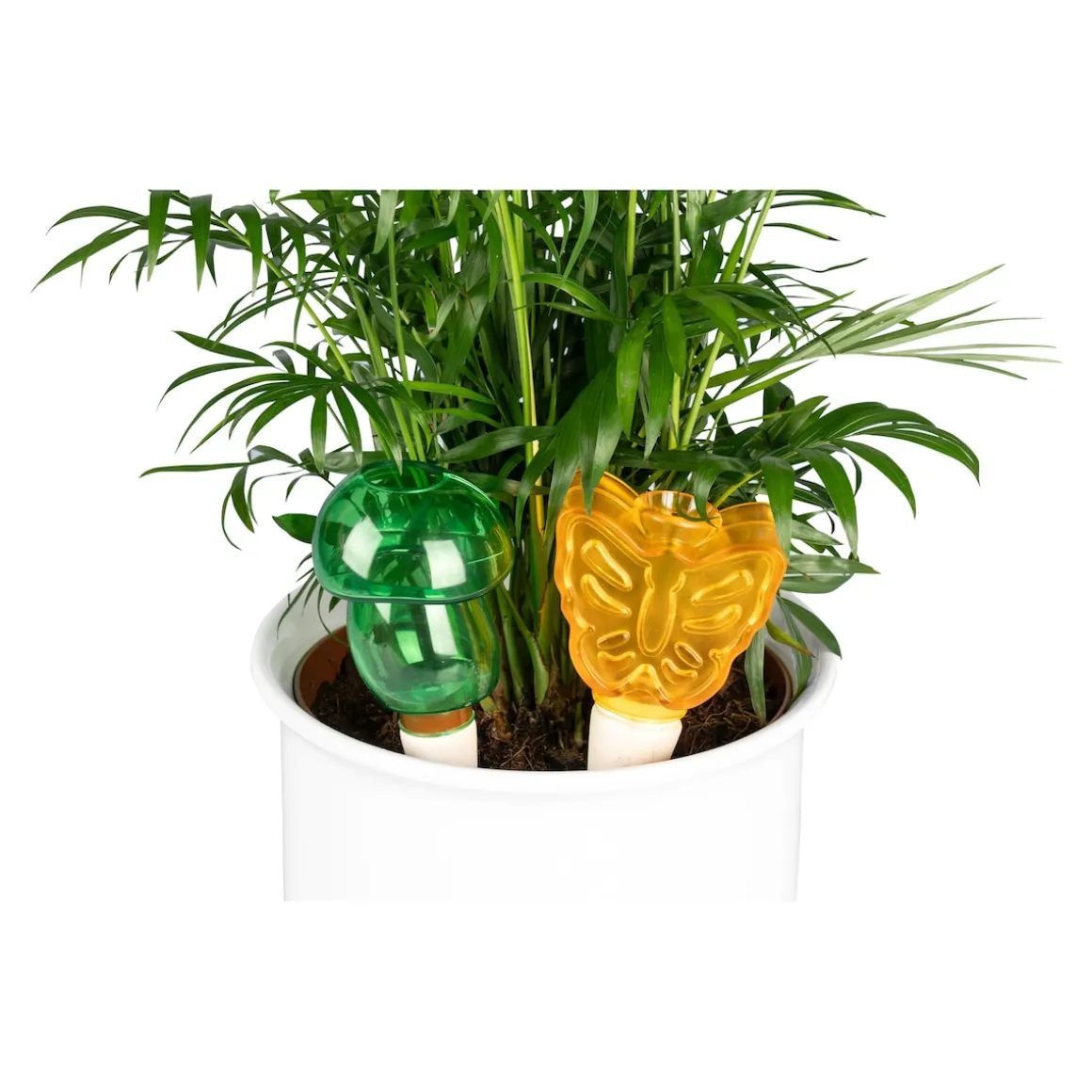 Sie wollen ein paar Tage verreisen oder sorgen sich allgemein ums Gießen? Dann sind diese Bewässerungshilfen perfekt: Das oben eingefüllte Wasser holen sich Ihre Pflanzen selbst in der richtigen Menge durch den Stab im Erdreich. Das leicht durchsichtige Material zeigt an, wenn nachgefüllt werden muss.