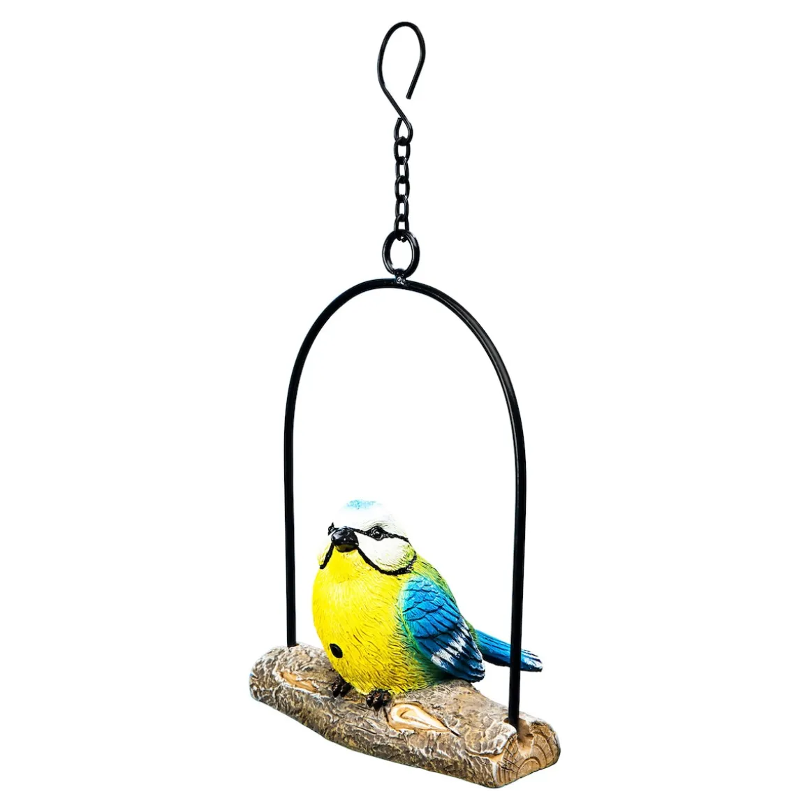 Diese kleine Blaumeise ist aufmerksamer als mancher Wachhund: Wenn jemand in Ihre Nähe kommt, zwitschert sie dank eingebautem Bewegungsmelder unüberhörbar los. Mit Sensor im Bauch und Ein-/Ausschalter.
