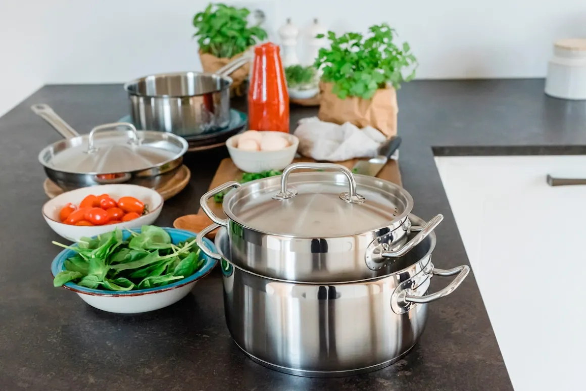 Die Bratpfannen aus Edelstahl sind mit den Durchmessern 24 cm, 28 cm und 32 cm erhältlich.
