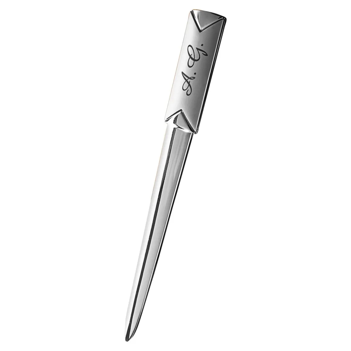 Darf auf keinem Schreibtisch fehlen! Silberfarbenglänzender Brieföffner. Griff im Matt-Dekor. Wenn Sie das Besondere verschenken wollen, liegen Sie damit genau richtig!