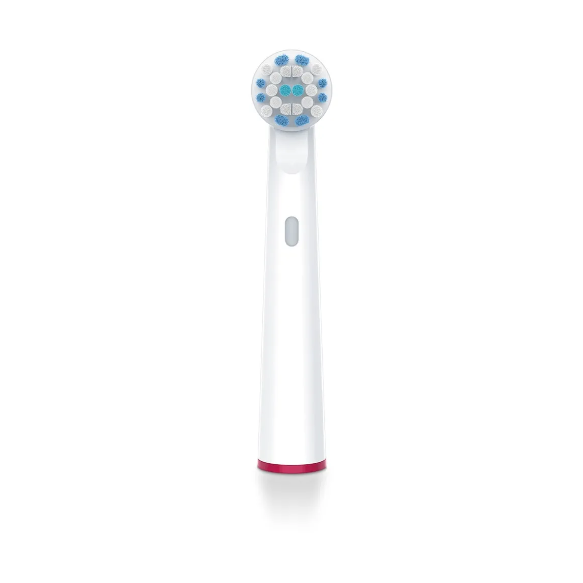 Unsere innovativen Bürstenköpfe, sowohl Sensitiv als auch Clean, wurden entwickelt, um Ihre Zähne und Ihr Zahnfleisch zu schützen. Mit zwei unterschiedlichen Borstenlängen sorgen sie für eine gründliche Reinigung und optimale Mundhygiene. Die praktische Schutzkappe gewährleistet Hygiene auch unterwegs. Dank der verschiedenen Farbringe können Sie Ihre Bürstenköpfe leicht unterscheiden.