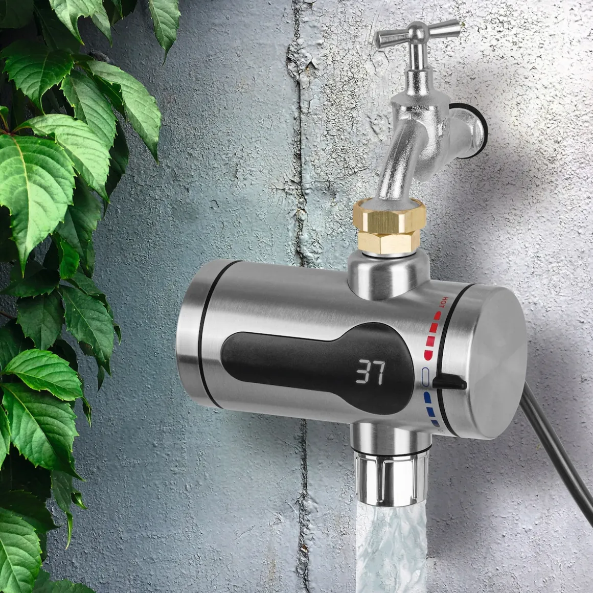 Der „MAXXMEE“ Edelstahl-Durchlauferhitzer kann schnell, einfach und mühelos nahezu überall installiert werden, wo es einen Wasser- und Stromanschluss gibt. Anschrauben, Stecker rein, fertig! Dank der integrierten, leistungsstarken Heizspirale wird das Wasser sofort warm – ohne lange Verzögerung und ohne Wasserspeicher! Die genaue Temperatur kannst du zudem jederzeit an der digitalen LED-Anzeige ablesen. Endlich hast du überall dort heißes Wasser, wo du es schon lange gebraucht hast: in deinem Pool, im Garten, in deiner Werkstatt, auf der Terrasse, im Wohnwagen u.v.m. Komplett aus Edelstahl punktet der „MAXXMEE“ Edelstahl-Durchlauferhitzer nicht zuletzt mit hochwertiger Optik und robuster Langlebigkeit. Technische Daten: max. 3600 W, 220-240 V, 50/60 Hz. Wasserdruck: 0 ,04-0,4 mPa (1,4-6l/min).