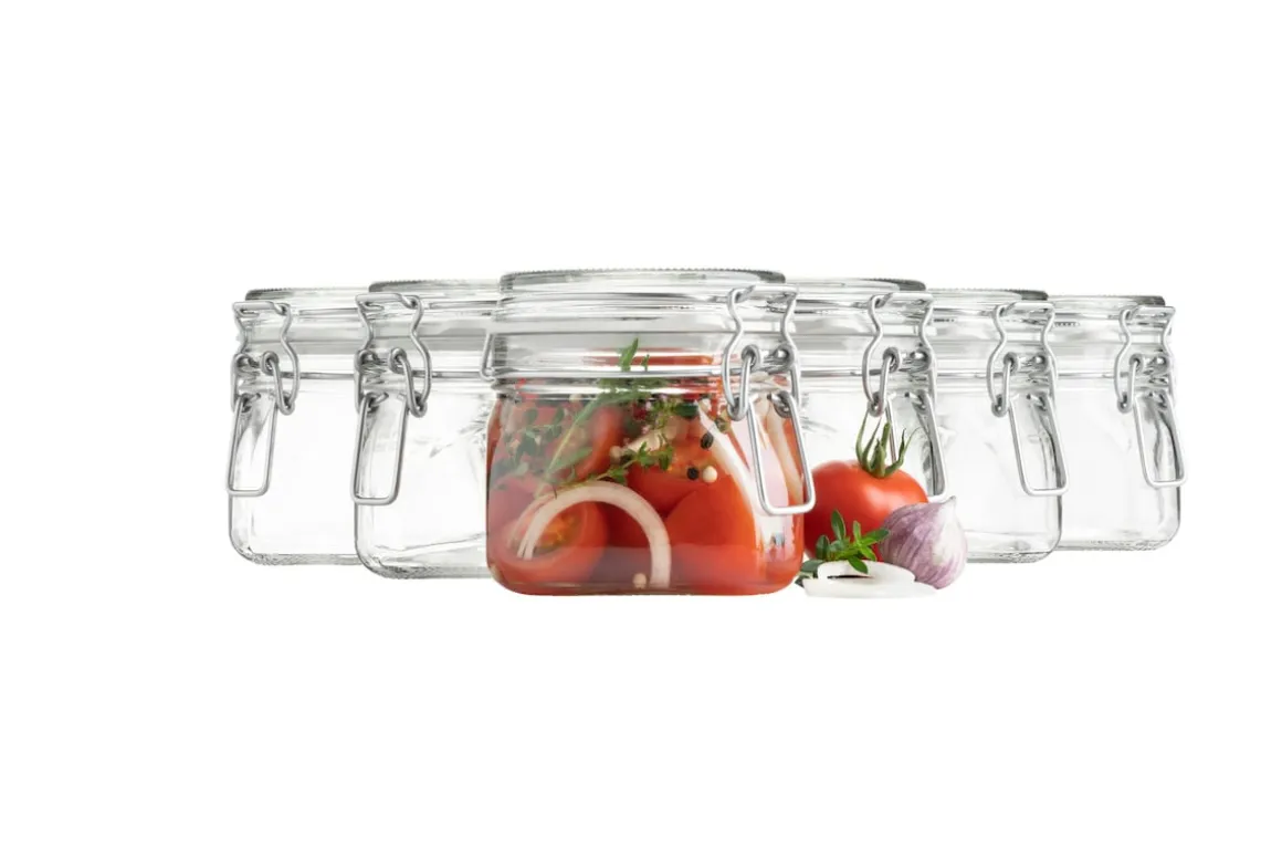 Die dickwandigen Einkochgläser sind spülmaschinentauglich, backofengeeignet und können auch im Tiefkühler eingefroren werden. Besonders die praktische eckige Form ermöglicht äußerst platzsparendes Lagern.