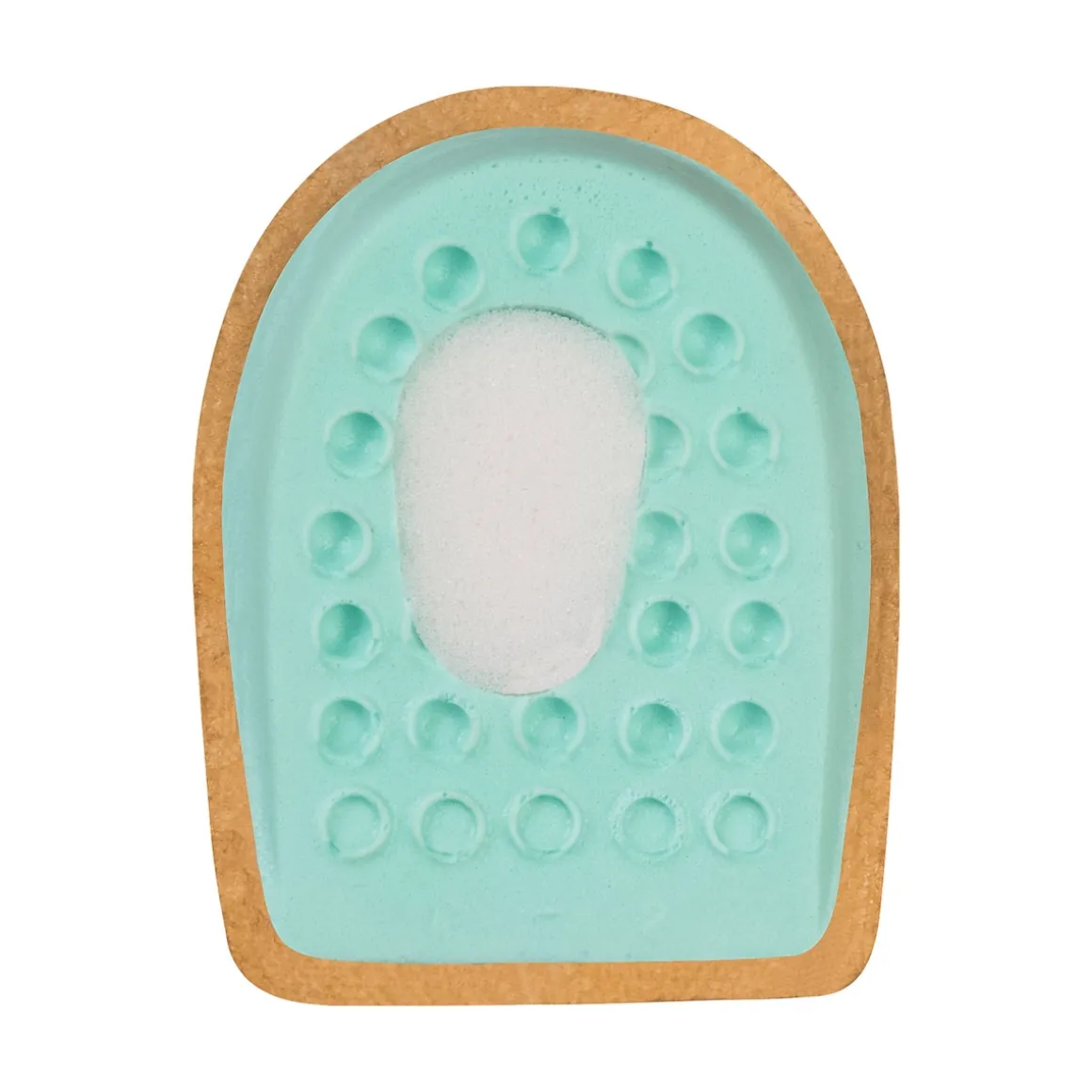 Stabile Fersenkissen heben die Ferse an, die Vertiefung in der Mitte reduziert den Druck und entlastet den Fersensporn auf Dauer. Das Kissen wird mit einem Selbstklebepunkt sicher im Schuh fixiert.