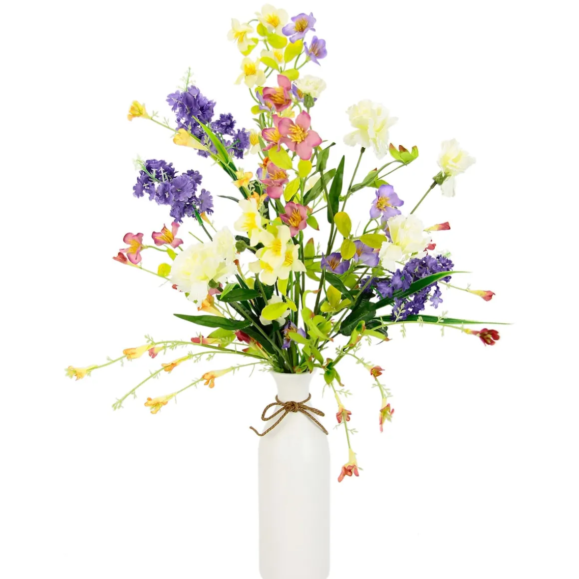 Genießen Sie den Frühling das ganze Jahr über mit unserem charmanten Blumen-Arrangement. Locker gebunden und in einer hochwertigen Keramikvase präsentiert, verbreitet es eine frische Leichtigkeit in jedem Raum. Die Kunstblumen aus pflegeleichtem Polyester sind nicht nur besonders langlebig, sondern auch täuschend echt. Bringen Sie dauerhaft frühlingshafte Stimmung in Ihr Zuhause – ohne Aufwand, immer lebendig und farbenfroh.