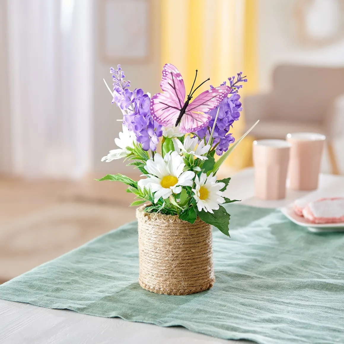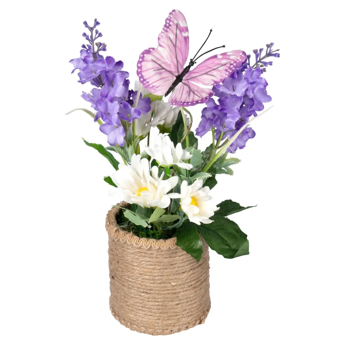 Der zauberhafte Schmetterling hat es sich bereits in diesem Blütentraum gemütlich gemacht. Das pflegeleichte Arrangement setzt farbenprächtige Akzente auf Tisch oder Kommode und vertreibt im Nu den Winter aus Ihrem Zuhause.