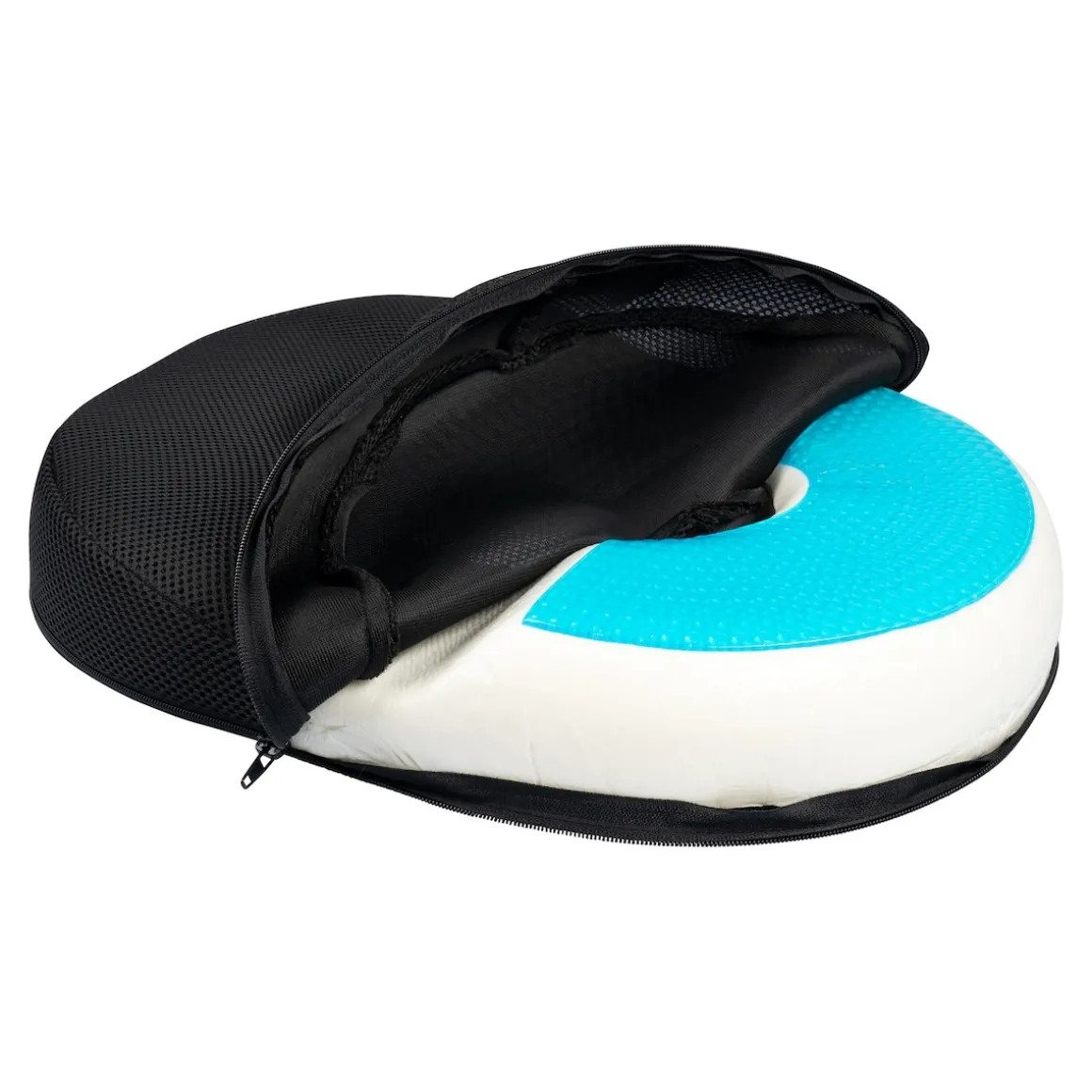 Die ergonomische Form des Gel-Sitzrings unterstützt eine aufrechte, gesunde Sitzhaltung. Durch eine gleichmäßige Druckverteilung und spürbare Entlastung von Wirbelsäule und Steißbein ist er besonders für langes Sitzen geeignet. Das Sitzkissen passt auf jede Sitzfläche und kann zu Hause, bei der Arbeit, im Rollstuhl oder im Auto verwendet werden. Auch auf Reisen mit dem Flugzeug oder Zug ist es ein praktischer Begleiter. Die Aussparung in der Mitte, der Kern aus Memory-Schaum und die Gel-Oberfläche sorgen für eine angenehme Druckentlastung. Dadurch ist der Sitzring vor allem bei Schmerzen in der Gesäßregion von Vorteil. Die Aussparung in der Mitte ermöglicht eine teilweise Freilagerung des Gesäßes, die zur Schmerzlinderung im Sakral- und Rektalbereich beiträgt. Als Anti-Dekubitus-Kissen, nach einer Operation im Dammbereich, bei Hämorrhoiden und Steißbeinverletzungen oder während der Schwangerschaft wird ein schmerzfreier Sitzkomfort geboten.