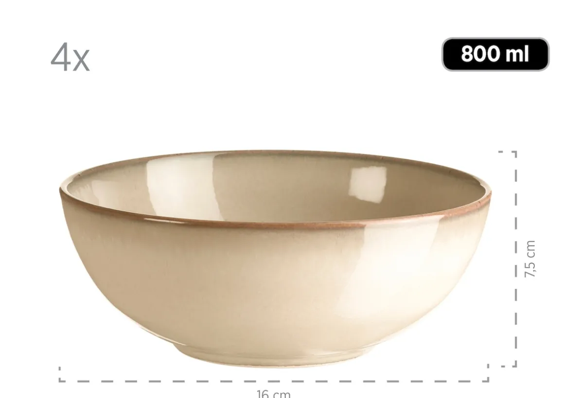 4 x Mehrzweckschale für Suppen, Müsli u.v.m. mit Ø 16 cm (800 ml Füllmenge)