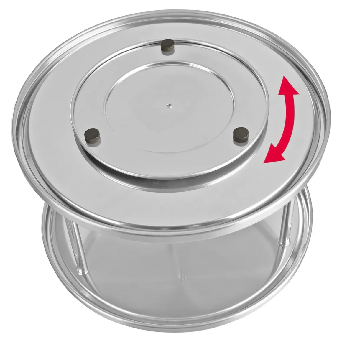 Übrigens: Das Schrankrondell lässt sich bei Bedarf auch als Servierteller auf der festlichen Tafel oder auf dem Büffet zweckentfremden. Dank seines schlicht-eleganten Designs fügt es sich überall harmonisch ein und kann seine drehbaren Vorzüge ausspielen. So eignet es sich ideal, um es mit kleinen Dips, Gebäck, herzhaften Snacks oder Süßigkeiten zu bestücken, von denen sich jeder Gast nach Belieben bedienen darf. Auch Medikamente, Brotaufstriche und sogar Kosmetikartikel lassen sich mithilfe des Rondells übersichtlich organisieren.