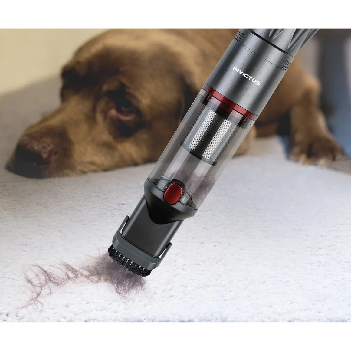 Der Invictus One ist saugstark auf allen Oberflächen und damit vielseitig einsetzbar. Er ist ideal geeignet für die Autoreinigung und die Reinigung von Polstermöbeln. Selbst Lampenschirme und sogar Pflanzen lassen sich mit dem handlichen Staubsauger kinderleicht von lästigem Staub befreien. Für empfindliche Oberflächen lässt sich die Fugendüse mit nur einem Klick durch einen geeigneten Bürstenaufsatz austauschen.