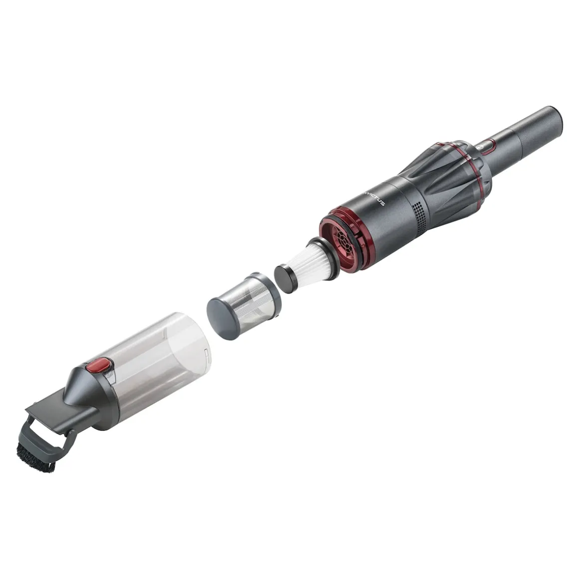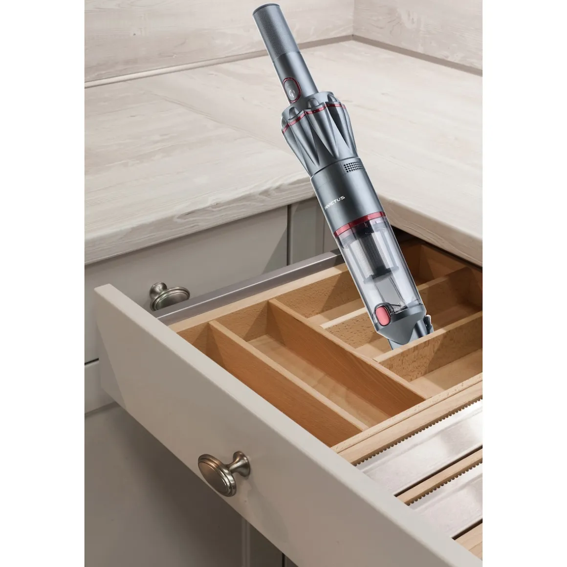 Dank seines schmalen Designs gelangt der Handstaubsauger problemlos in alle Ecken und Spalten. Auch schwer zugängliche Stellen unter bzw. hinter Kühlschränken, Möbeln und Heizungen sind für den wenigen Allrounder kein Problem.