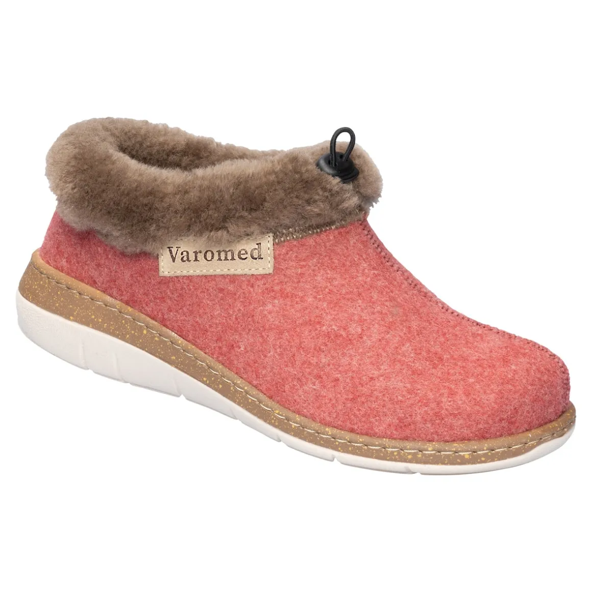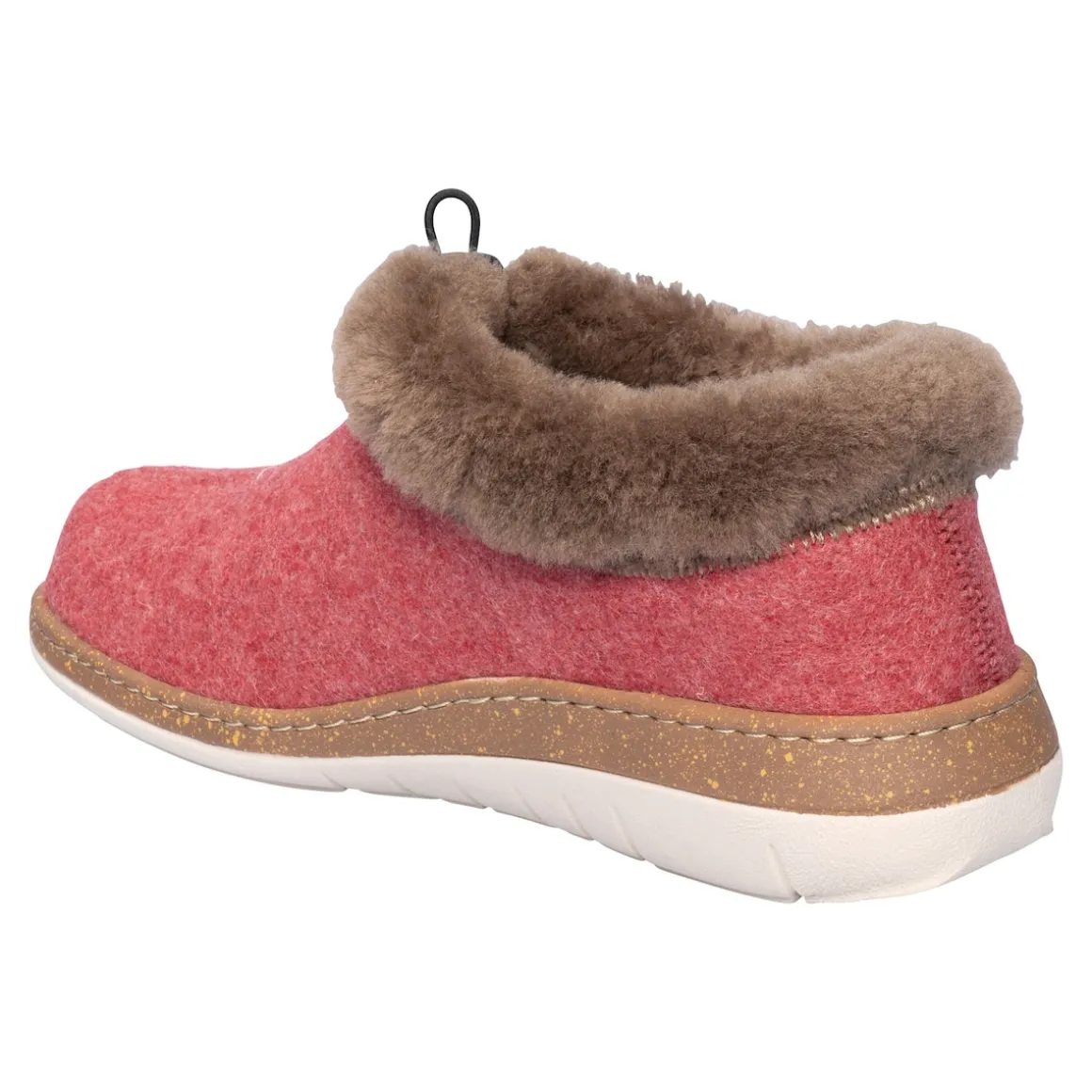Gemütlicher Hausschuh mit angenehmer Keilhöhe aus robustem Filzmaterial. Durch den Gummizug an den Fuß anpassbar für optimalen Halt. Die bequeme, natürliche Fußform und die PU-Sohle sorgen für ein herrliches, wolkenweiches Gehgefühl. Herausnehmbar Einlegesohle, durch persönliche Einlagen ersetzbar.