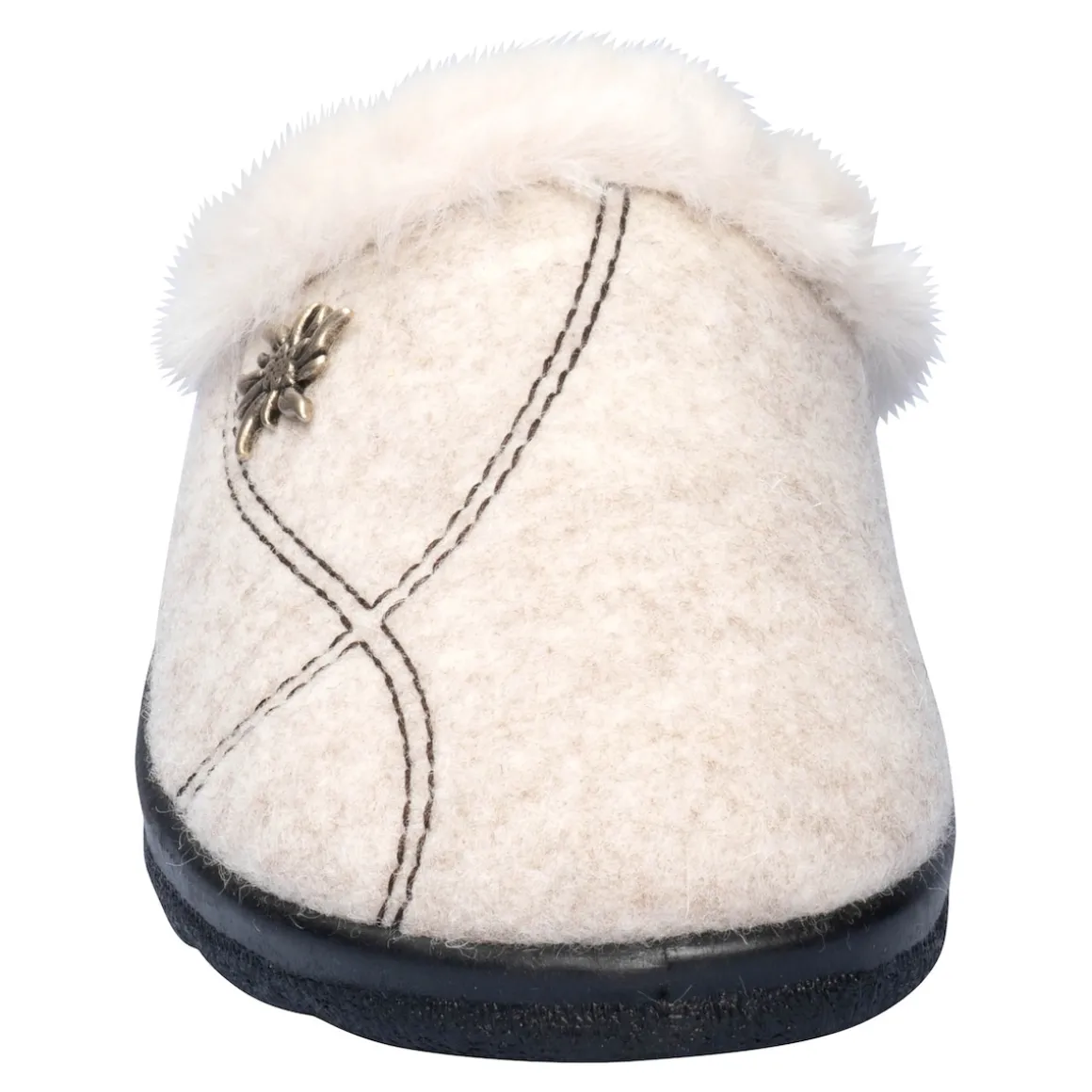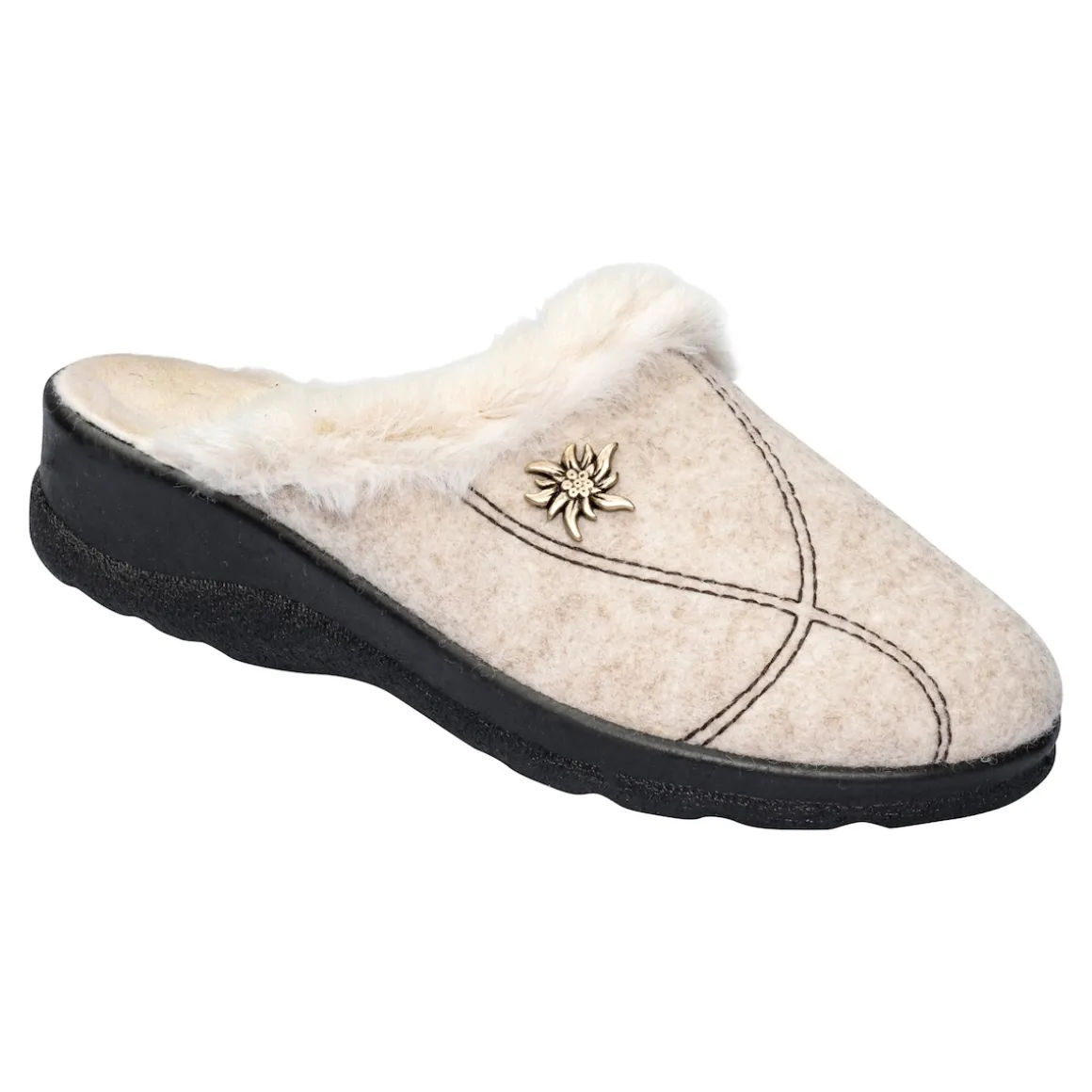 Genießen Sie pure Gemütlichkeit mit unseren warmen Hausschuhen in Filzoptik. Der flauschige Kunstfellrand verleiht ihnen eine kuschelige Note, während die wunderschöne Edelweiß-Applikation für einen charmanten Akzent sorgt. Das angenehm weiche Plüschfutter schmiegt sich sanft an Ihre Füße und hält sie schön warm. Diese Hausschuhe sind ideal zum Reinschlüpfen und sofortigen Wohlfühlen. Gönnen Sie Ihren Füßen das Beste und erleben Sie den Komfort dieser hochwertigen Schuhe.