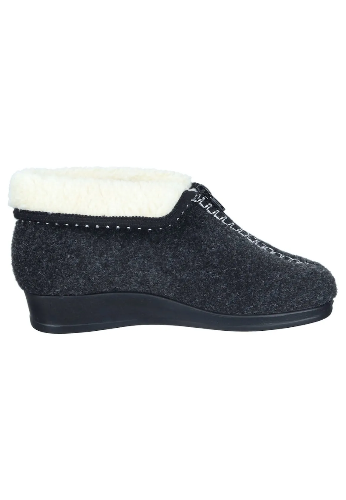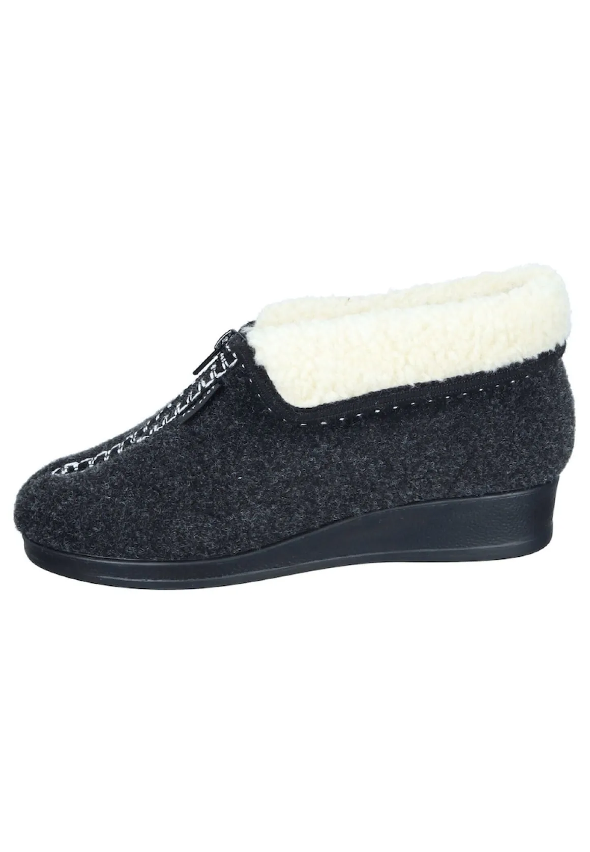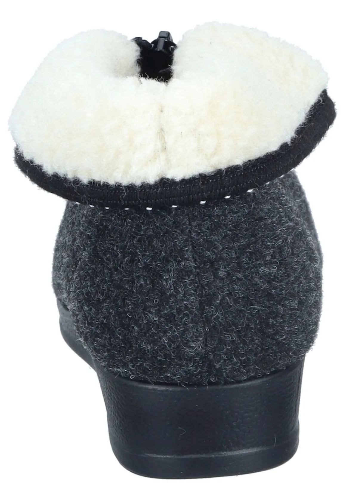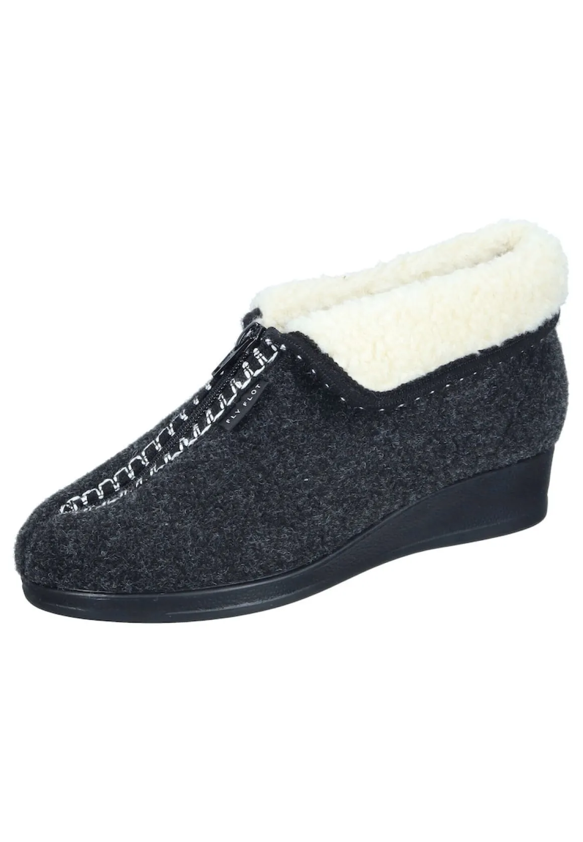 Bei diesem Produkt handelt es sich um einen Schuh aus der Kategorie Klassische Hausschuhe für Damen. Als Obermaterial wurde Filz verwendet und im inneren Bereich des Schuhs wurde Schurwollfutter und herausnehmbare Memory Foam Decksohle verarbeitet. Die Schuhweite dieses Artikels ist normal und somit standard. Als Verschlussart wurde Reißverschluss gewählt und die PU-Sohle rundet das Produkt ab. Der Artikel fällt normal aus, bitte die gewohnte Größe bestellen. – Schuhweite: normal –