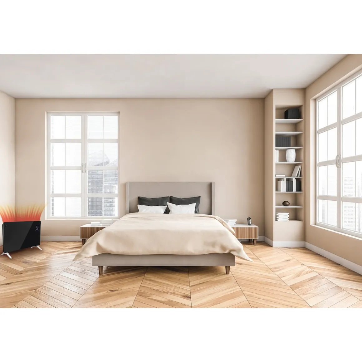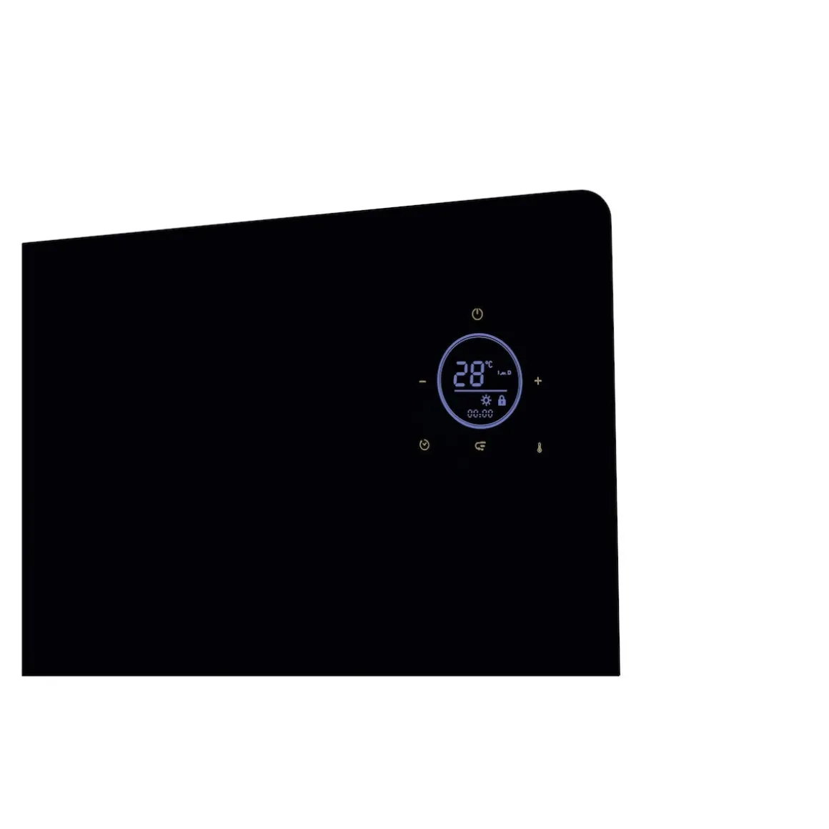 Ob in Wohn- oder Schlafzimmer – angenehme Wärme ohne unangenehme Gerüche oder Betriebsgeräusche. Elektronische Heizung mit Panel aus gehärtetem Glas. Leistungsstarke 2000 Watt (zwei Heizstufen: 1000W/2000W) für gleichmäßige Erwärmung. Bedienung über LED-Touch-Display oder Fernbedienung. Mit Raumtemperatursensor (Temperaturbereich: 15–50°C) und praktischem 24-Stunden-Timer.