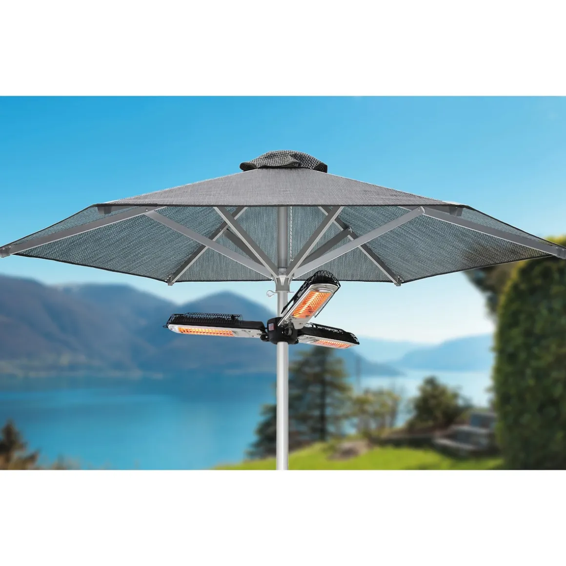 Die ideale Heizlampe mit Infrarot-Halogen Technologie eignet sich bestens für Schirmständer auf Terassen oder dem Gartensitzplatz. Das Halogen-Heizelement liefert angenehme Wärme in sekundenschnelle. Die Heizlampe lässt sich bequem ein- und ausschalten, dank dem Schutzgitter ist optimale Sicherheit geboten. Durch den Spritzwasser-Schutz kann das Gerät auch in feuchter Umgebung in Betrieb genommen werden. SIGA dient sowohl als eleganter Licht- wie auch Wärmespender.