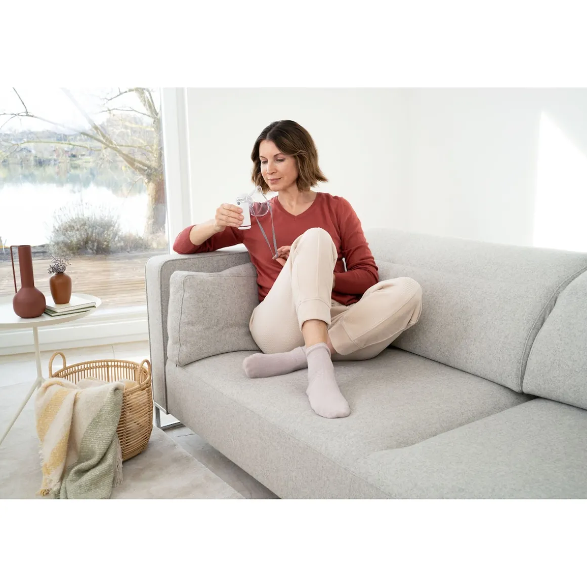 Der Inhalator bietet eine effiziente und schnelle Inhalation – ideal für zu Hause und unterwegs. Er ist besonders für die Behandlung von Erkältungen, Asthma und weiteren Atemwegserkrankungen geeignet. Einfache Bedingung mittels Ein-Knopf-Steuerung. Das integrierte Kontroll-LED informiert über den Betriebsstatus. Effektive Verneblung des Inhalats mittels Schwingmembran-Technologie. Inklusive Aufbewahrungstasche.