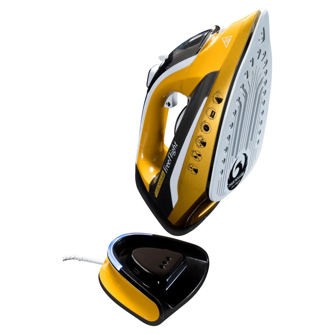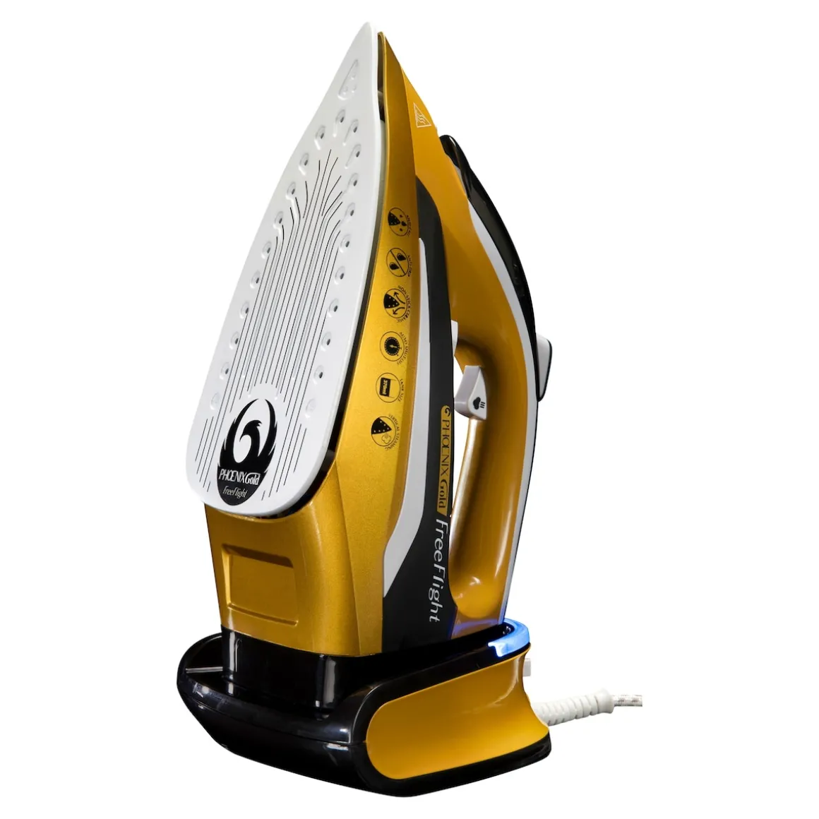 Praktisch: Der Phoenix Gold(R) Free Flight ist kabellos und damit besonders leicht zu handhaben. Ohne auf ein lästiges Kabel aufpassen zu müssen, in dem man sich oder das Wäschestück verheddern kann, ist die Arbeit viel schneller erledigt. Und abgesehen davon macht Sie der Verzicht auf ein Kabel natürlich flexibel in Ihrer Ortswahl. Warum nicht mal im Wohnzimmer oder im Garten bügeln? Mit dem Phoenix Gold(R) Free Flight sind Sie beim Bügeln völlig frei in Ihrer Standortwahl. Wenn Sie allerdings das Bügeln mit Kabel bevorzugen – kein Problem, Sie können das Gerät ebenso gut mit dem 1,9 m langen Kabel nutzen.