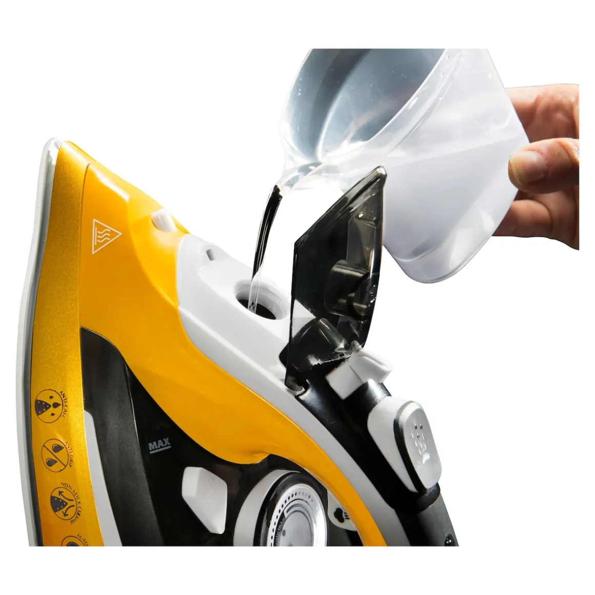 Die hochwertige Anti-Haft-Keramiksohle speichert die Hitze und kann auf diese Weise Falten aus dem Stoff in nur einem Schwung entfernen. An der Sohle bleibt kein Material haften. Das liegt an dem speziellen Dampfgenerator und der strömungsoptimierten Dampfkanäle, die dafür sorgen, dass die mikrofeinen Dampfmoleküle optimal über das Textil verteilt werden.