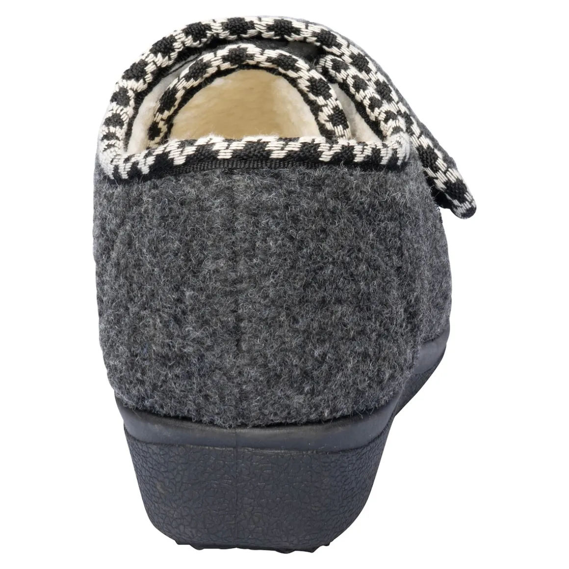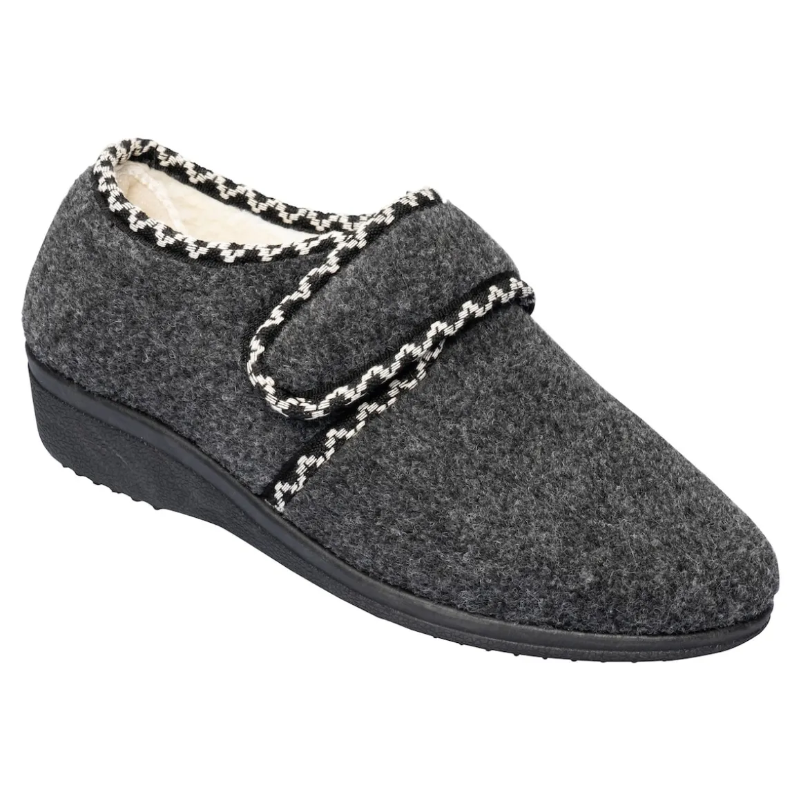 Kuscheliges Wohlgefühl für Ihre Füße an kälter werdenden Tagen: Dieser Hausschuh mit weichem Innenfutter aus Wolle wärmt angenehm und sorgt für ein ideales Fußklima. Dank Klettverschluss können Sie den Schuh leicht an- und ausziehen sowie optimal an Ihren Fuß anpassen. Die rutschhemmende Laufsohle hält auch dem kurzen Gang ins Freie stand.